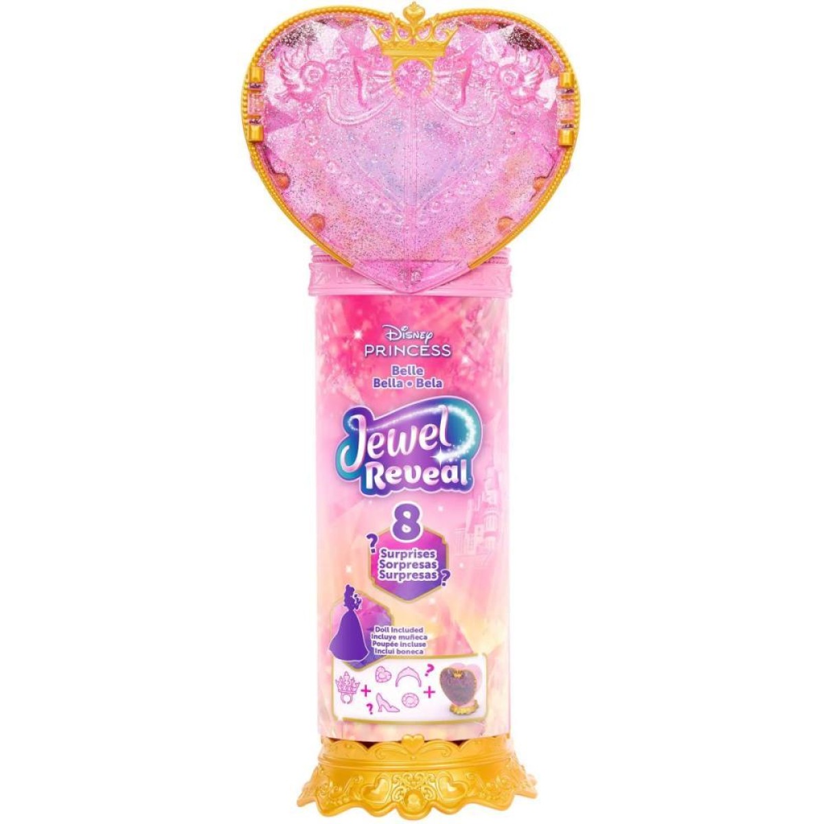 Abra o mundo encantado das Princesas Disney com a boneca surpresa Bela e seus acessórios mágicos, da linha Jewel Reveal! A diversão começa no momento em que as crianças desbloqueiam a joia em formato de coração no topo da embalagem. Elas revelam uma linda boneca da Bela e acessórios inspirados no amado filme A Bela e a Fera, da Disney. As crianças podem decorar a boneca com as joias e depois prender o coração na base da embalagem, criando uma caixa de joias para guardar tudo. Presente perfeito para fãs da Disney que amam moda e contar histórias! A boneca não fica em pé sozinha. Cores e decorações podem variar.