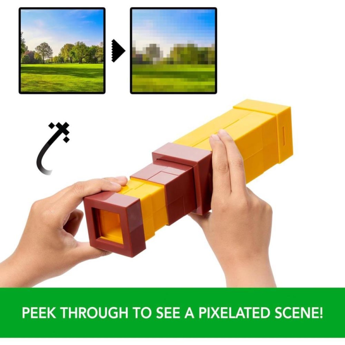 As aventuras de Minecraft vão ganhar vida com acessórios em tamanho real, como a luneta! Os fãs vão adorar recriar seus momentos favoritos do jogo ou inventar novas histórias com essa icônica Pixel Spyglass. A luneta vem com uma lente especial pixelada que transforma qualquer cenário no visual em blocos de Minecraft, fazendo qualquer lugar parecer um mapa do game. Em tamanho perfeito para as mãos das crianças, o acessório reproduz fielmente a versão usada no jogo. E depois de usá-la, jogadores e fãs nunca mais vão ver o mundo da mesma forma! Vendido separadamente, sujeito à disponibilidade. Cores e decorações podem variar.