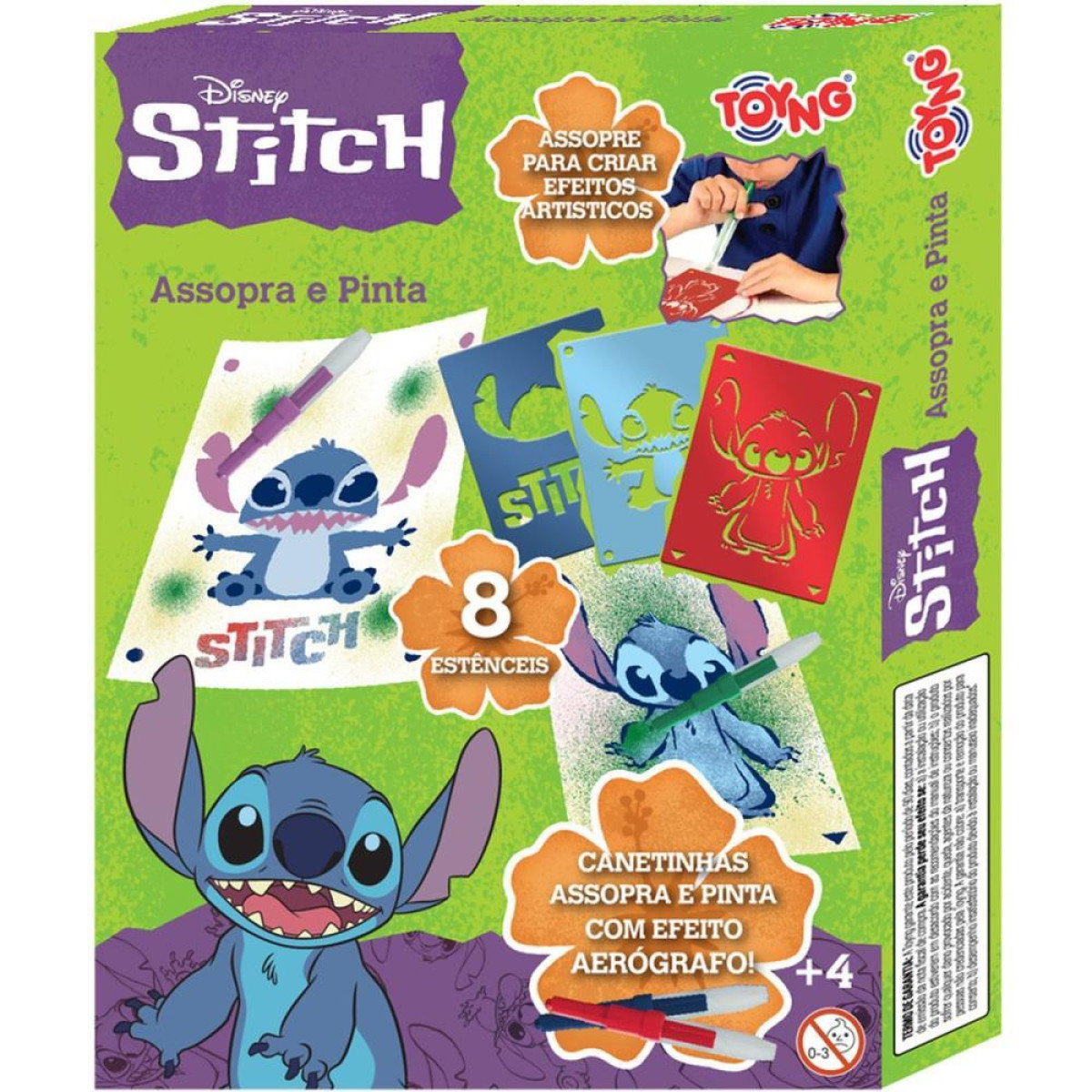 Esse conjunto Assopra pens para pintar Stitch Disney e diversao garantida! Voce pode usar as cores do jeito que quiser e inventar suas proprias aventuras do Stitch. Alem de super divertida a Assopra pens para pintar stitch estimula a criatividade e a cordenacao motora da sua crianca! Nao fique de fora dessa aventura colorida!