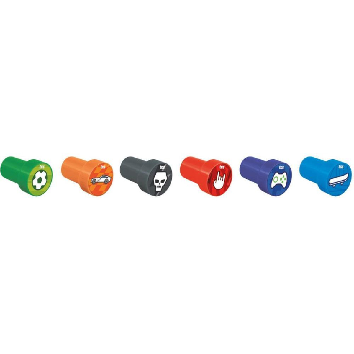 O Carimbo Radical chegou para conquistar os amantes do universo radical! Carimbo autotintado com reservatorio interno de tinta. Sao 6 diferentes opcoes de estampas que estimulam o aprendizando e a diversao.