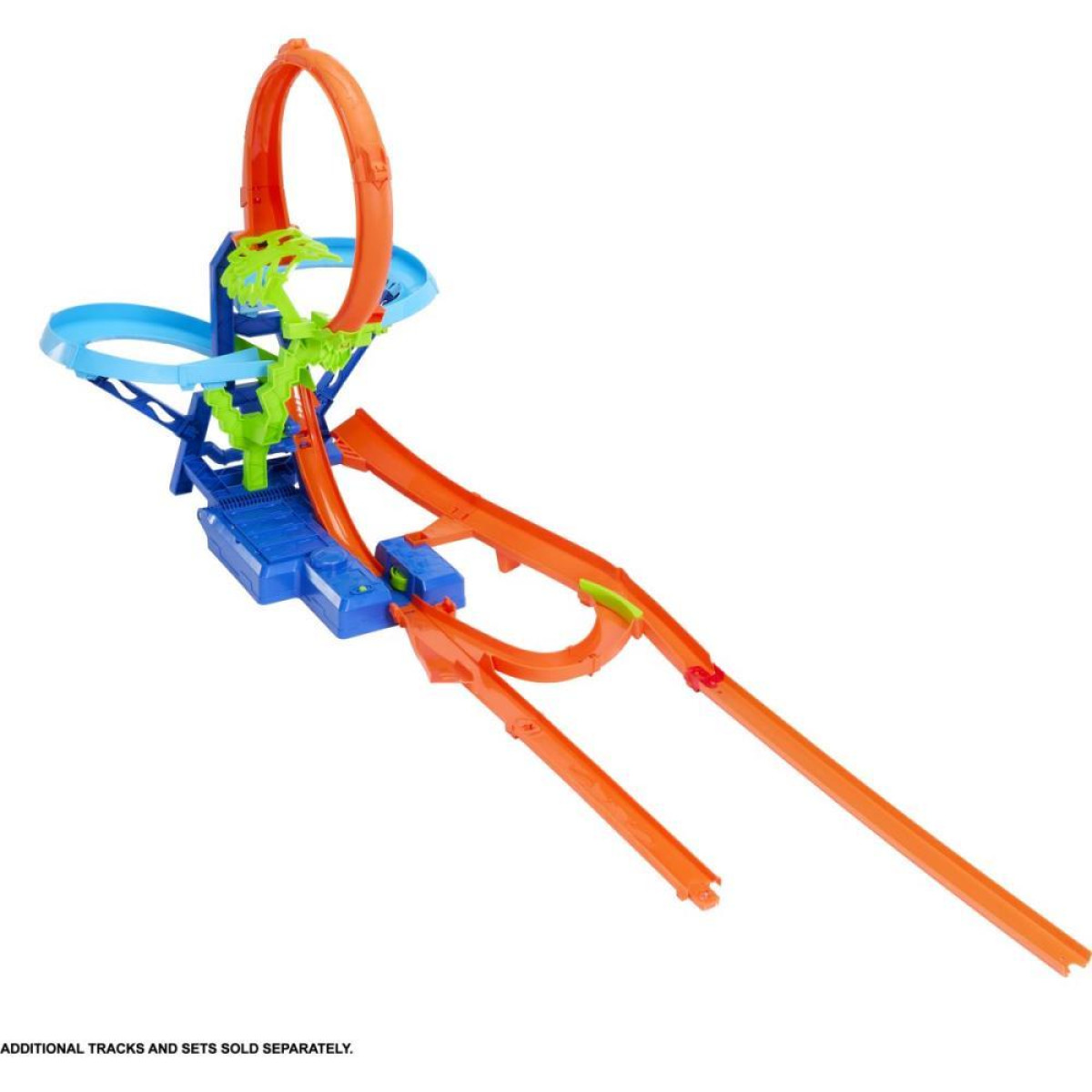 Corrida, acrobacias e colisões com este Conjunto de Pista Hot Wheels, que inclui um acelerador motorizado e pode ser dobrado para fácil armazenamento. Basta colocar o carro de brinquedo Hot Wheels incluído, e ele será lançado imediatamente em um salto acrobático e um loop, seguido de outro salto e curvas, antes de repetir o movimento. Depois, você pode virar o desviador para correr para novos desafios. A emoção irá aumentar adicionando mais carros em escala 1:64 para ver quanto tempo demora até ocorrer uma colisão no ar. (Carros adicionais vendidos separadamente.) O conjunto possui uma alça e armazenamento dobrável para facilitar o transporte. As cores e decorações podem variar.
