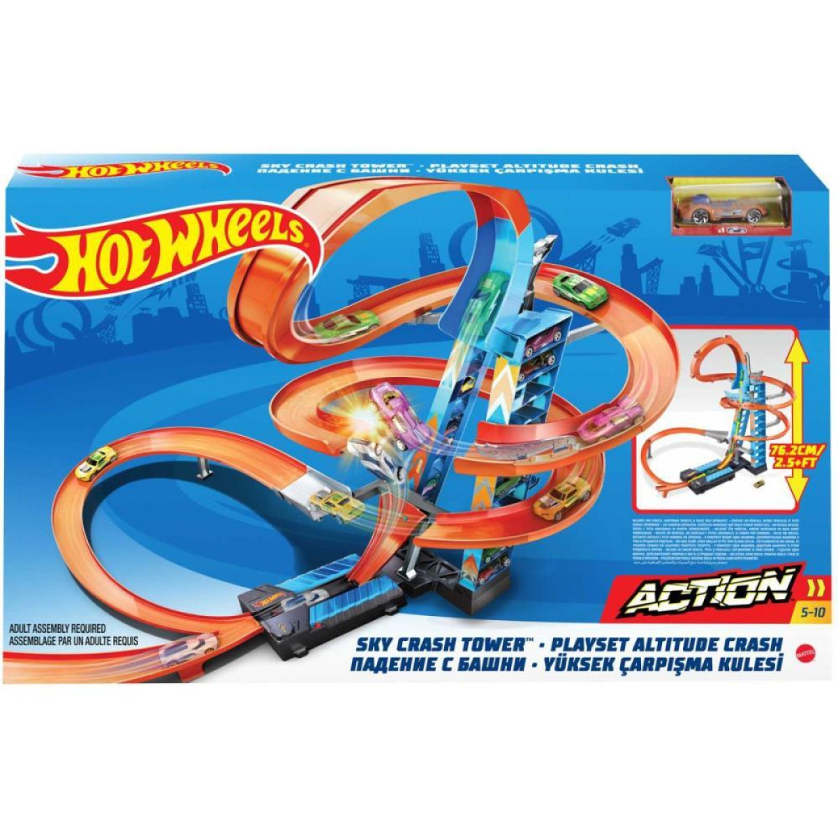 o Hot Wheels Sky Crash Tower Foi Construído Para Máxima Ação Motorizada de Colisão e Corrida com Uma Pegada Enorme Super Legal Que Tem Mais de 80 Cm de Altura. As Crianças Podem Impulsionar Seus Veículos Para o Céu Para Saltos Superlegais e As Colisões Aéreas Mais Épicas de Todos Os Tempos. a Torre Oferece Estacionamento Para Mais de 20 Carros, e Uma Pista Laranja Que É Atravessada Várias Vezes Oferece Uma Incrível Ação de Acrobacias com Um Impulsionador Motorizado Para Aproveitar a Competição e Melhorar As Habilidades de Acrobacias e Corridas. As Crianças Podem Correr com Vários Carros Ao Mesmo Tempo, Adicionando Mais e Mais Carros Para Criar Suas Colisões Mais Épicas de Todos Os Tempos. o Playset Sky Crash Tower Se Dobra Para Facilitar o Armazenamento e Inclui Um Veículo Hot Wheels.