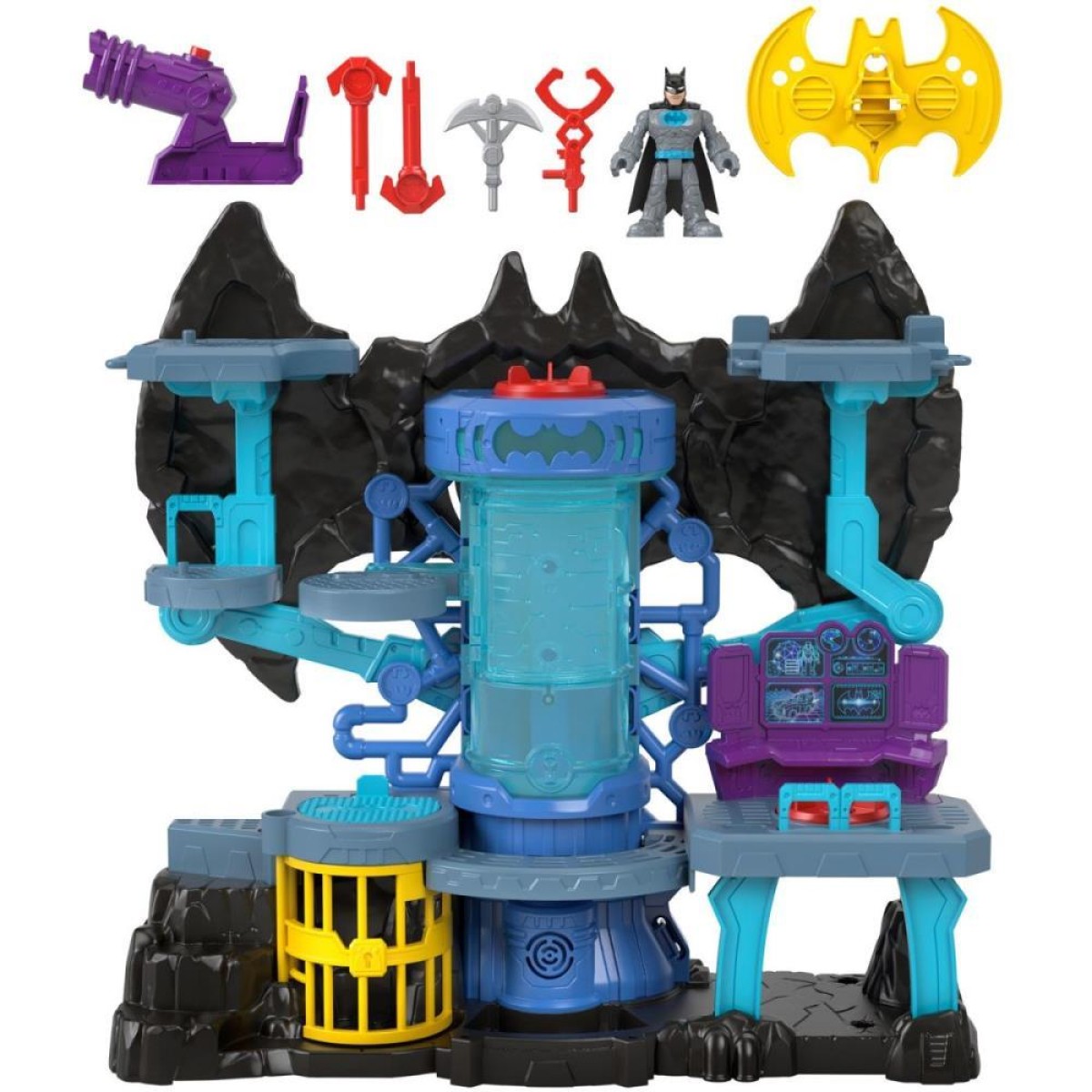 Os jovens combatentes do crime podem ajudar Batman ™ a derrotar os Super-Vilões de Gotham City ™ com o conjunto de jogos Imaginext® DC Super Friends ™ Bat-Tech Batcave ™ da Fisher-Price®. O Batman ™ pode “ligar” para a batalha na câmara de energia, que ilumina a figura com efeitos sonoros fantásticos enquanto as crianças giram o Power Pad. Em seguida, as crianças podem inclinar o símbolo do morcego gigante para mover diferentes áreas do conjunto de brinquedos para que o Batman ™ possa entrar em ação, seja lançando projéteis ou “voando” com a Asa de Batalha! O playset também apresenta um alçapão e uma cela de prisão para prender os bandidos. (Figuras adicionais vendidas separadamente e sujeitas a disponibilidade).