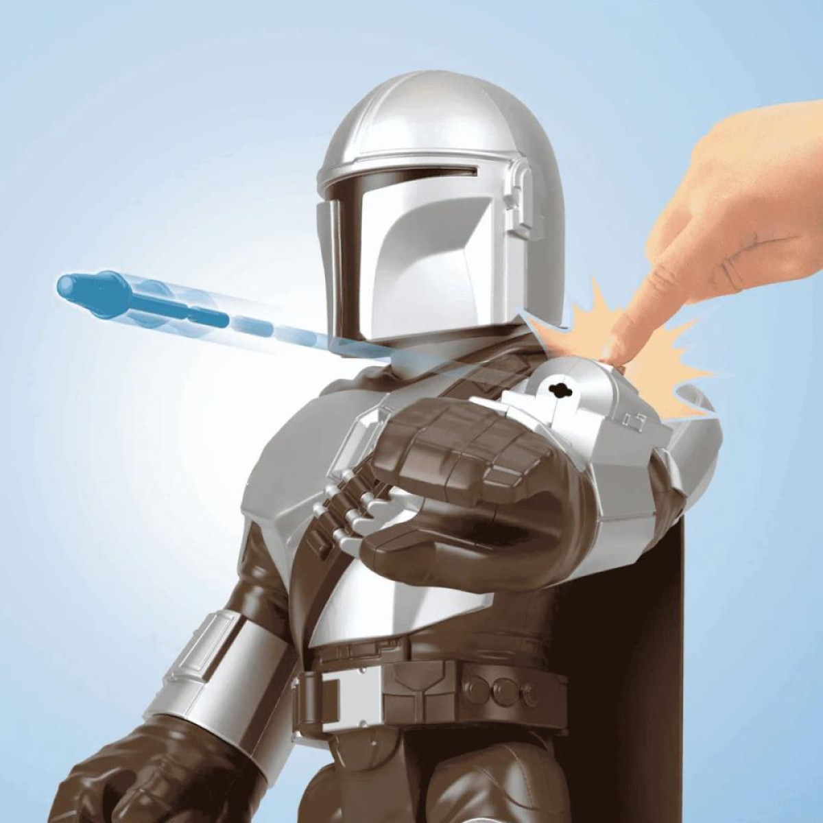 As crianças em idade pré-escolar podem imaginar aventuras galácticas épicas com esta figura Imaginext Star Wars Mandalorian XXL da Fisher-Price. Com 41,2 centímetros de altura, esta figura articulada extragrande é inspirada no personagem homônimo da aclamada série Star Wars e apresenta uma capa de tecido macio, além de braços e pernas móveis. Para aumentar a diversão nas histórias, a figura Mandalorian XXL vem com um lançador de pulso acionado pelas crianças para lançar projéteis. As cores e decorações podem variar.
