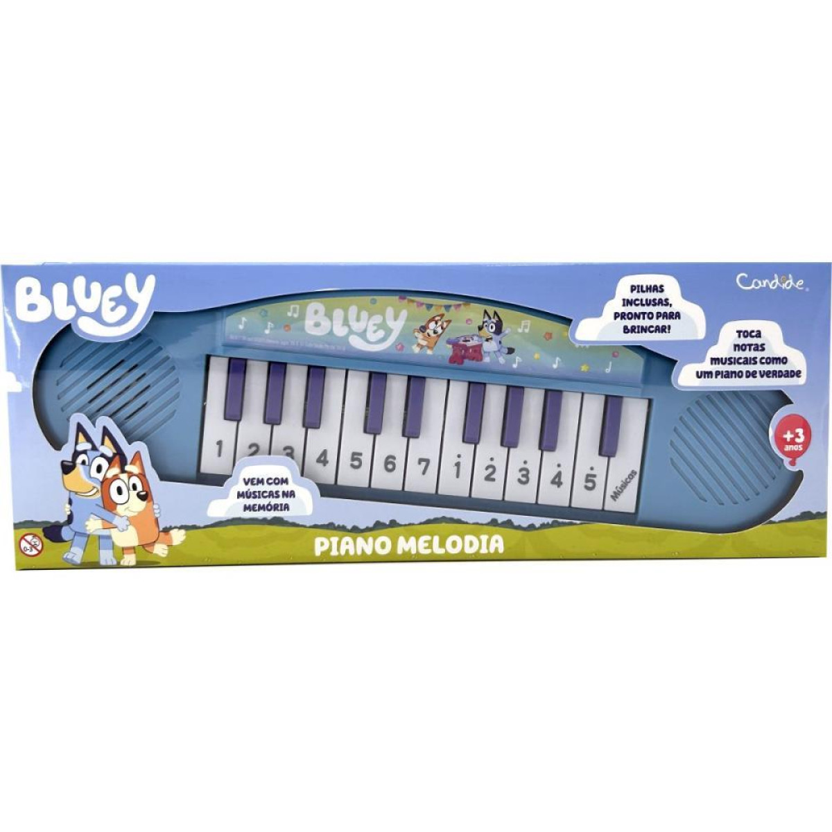 Instrumento Musical Bluey Piano Melodia Piano com teclas de musica e teclas funcionais com som de piano. Utiliza 2 pilhas AA inclusas para demonstracao