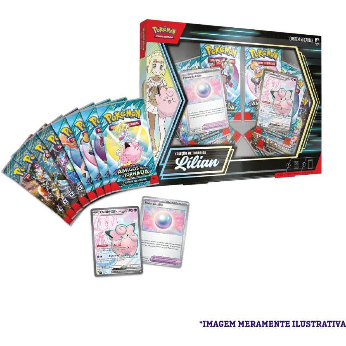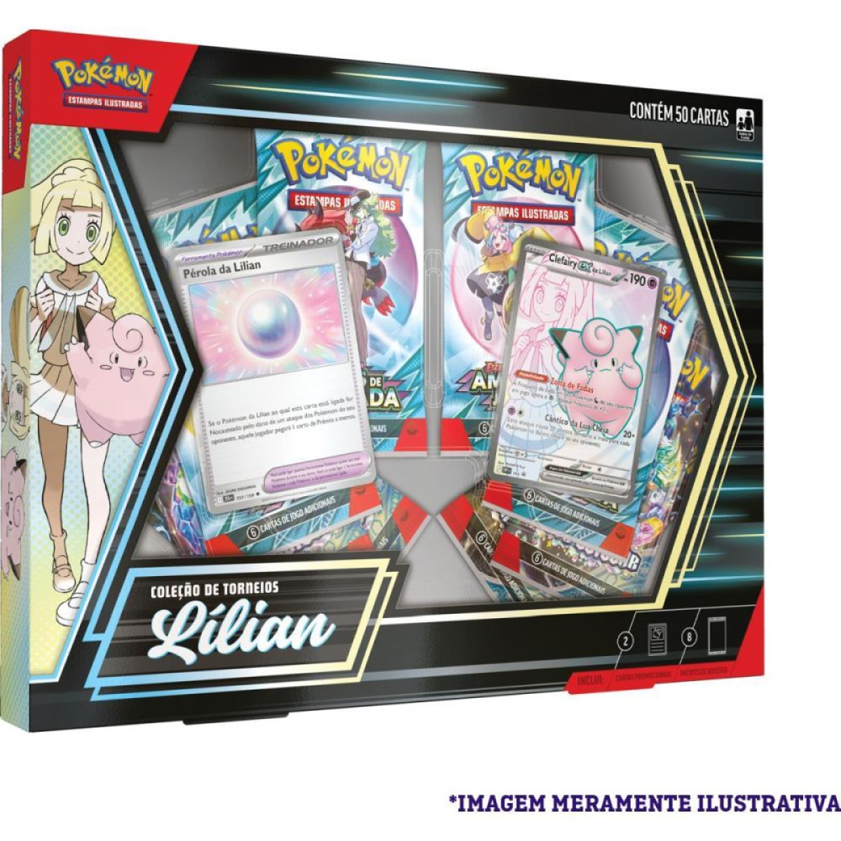 Lilian e uma Treinadora de Pokemon gentil e corajosa, cuja forca vem dos vinculos que compartilha com seus Pokemon. Como uma carta holografica promocional, Clefairy ex da Lilian coloca pressao nos Pokemon de tipo Dragao e fica ainda mais forte quando seus amigos estao no Banco! Voce tambem encontrara uma copia de Perola da Lilian, uma carta de Ferramenta Pokemon que serve de apoio aos Pokemon da Lilian, alem de varios pacotes de booster do Pokemon Estampas Ilustradas"