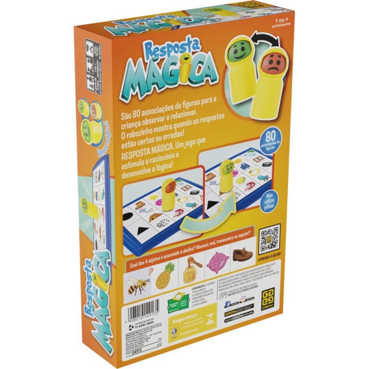 A Resposta Magica traz 80 associacoes ilustradas para a crianca observar, relacionar e adivinhar a resposta correta, passando por temas variados como animais, cores, objetos e formas.