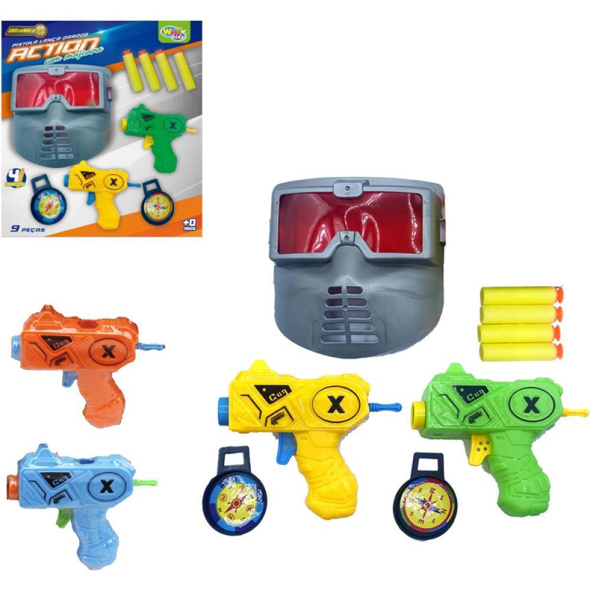 Lancador Dardo Duplo C/mascara 9pcs (s) PISTOLA LANCA DARDOS DUPLA COM MASCARA 9 PECAS TAMANHO DA PISTOLA: 10,5CMx 12CMx3CM