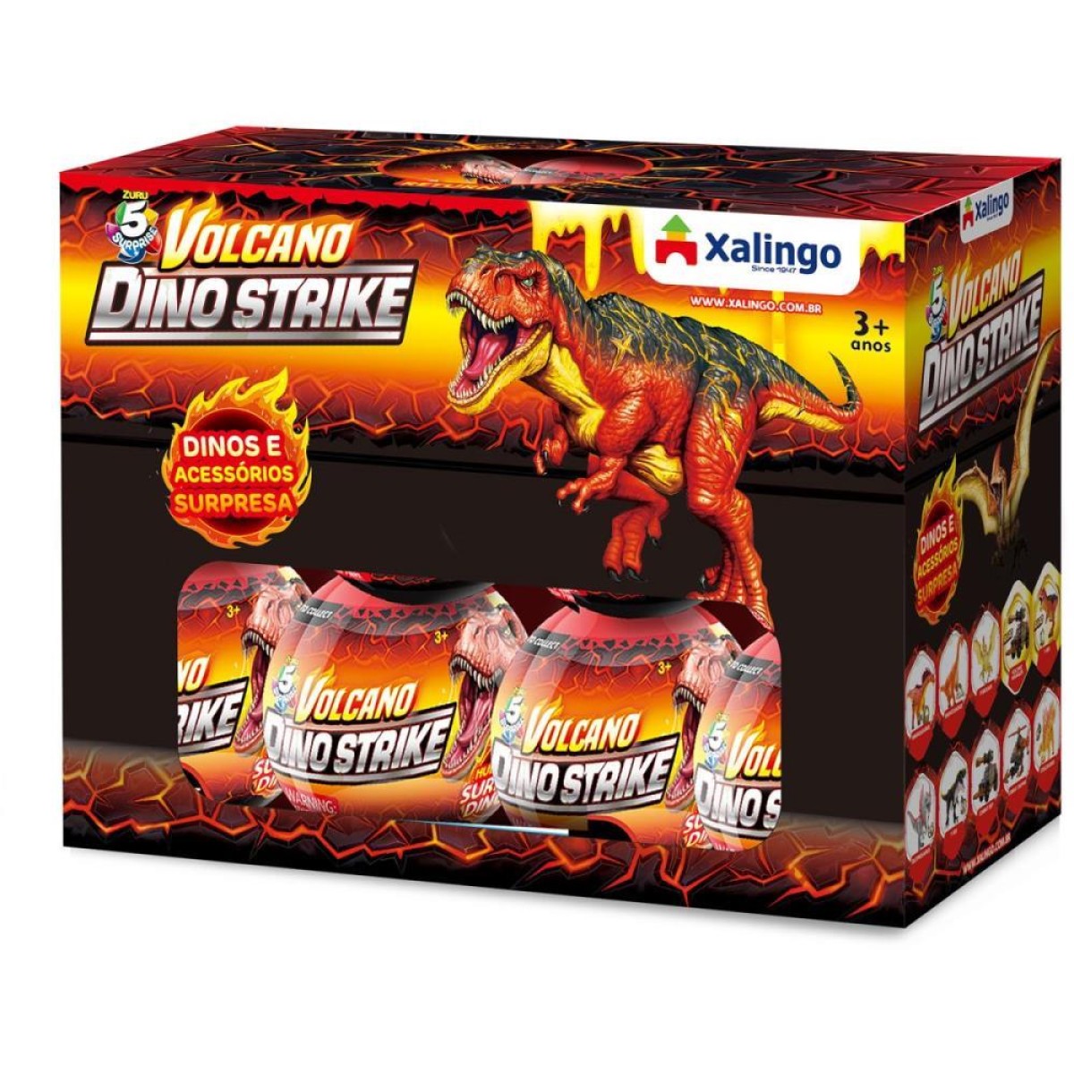 Desembale, monte e brinque muito com os dez colecionaveis da serie Dino Strike Xalingo, incluindo um raro! Cada bola supressa vem com 1 mini dinossauro articulado ou 1 mini veiculo de caca, 1 acessorio e 1 guia de colecionador. Dimensoes da bolinha: 8 cm de diametro. Indicado para criancas a partir dos 3 anos.