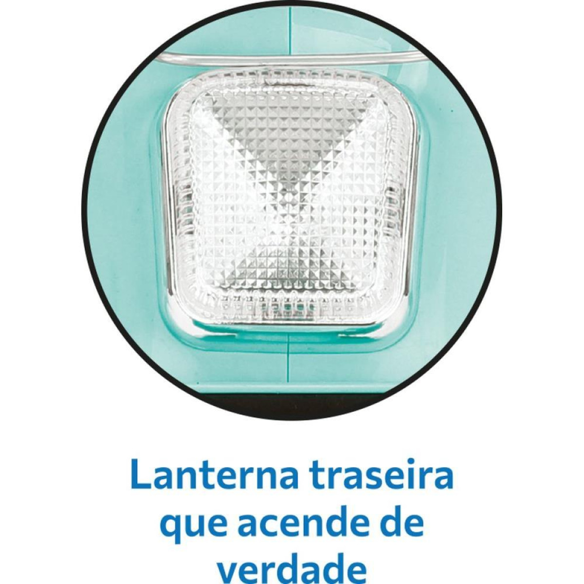 Destaques do Produto Iluminacao Completa Farois dianteiro e traseiro para maior visibilidade e seguranca. Indicador de Bateria Exibe o nivel de carga para que a diversao nao seja interrompida. Facil Controle e Direcao Botao ligadesliga para acionamento simples. Botoes de marcha para frente, re e ponto morto. Limitador de giro do guidao para uma pilotagem mais segura. Entretenimento Integrado Entrada USB e cabo auxiliar MP3 para reproducao de musicas. Seletor de musica para personalizar a trilha sonora dos passeios. Seguranca e Durabilidade Dispositivo de protecao do sistema eletrico, garantindo mais seguranca. Estrutura resistente, projetada para acompanhar as aventuras dos pequenos. Bateria Recarregavel e Praticidade Movida por uma b