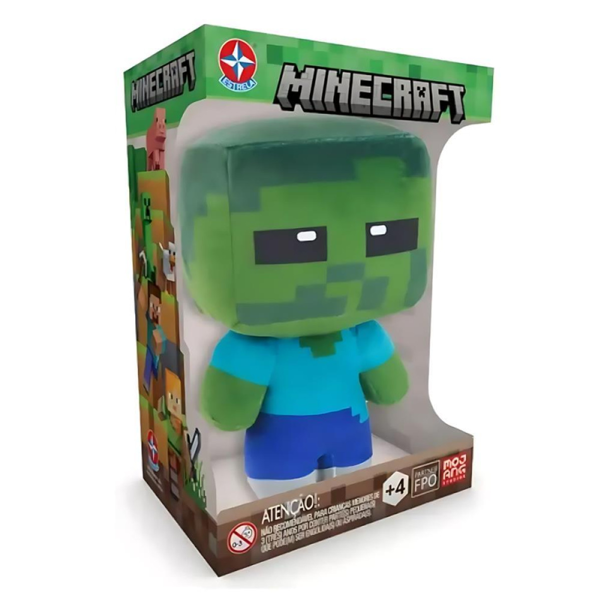 O grande sucesso do mundo dos video games agora no formato de pelucia! Para voce que e fa do game Minecraft e gosta de se aventurar em meio a milhares de blocos cubicos para fazer as mais diversas e divertidas construcoes, os bonecos de pelucia vem para te acompanhar antes, durante ou depois do jogo! Em outras palavras, eles podem fazer companhia a voce em qualquer momento! A pelucia Zobie tem 18 cm de altura. Quando estiver preparado, pegue sua pelucia e aventure-se no curioso mundo de cubos de Minecraft!