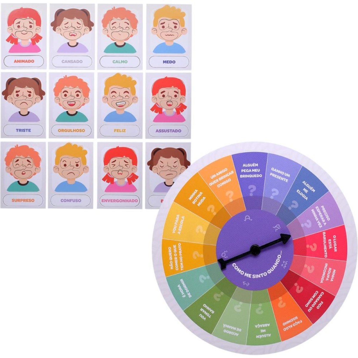 Auxilia na identificacao e expressao das emocoes por meio de pecas que representam sentimentos e expressoes faciais;