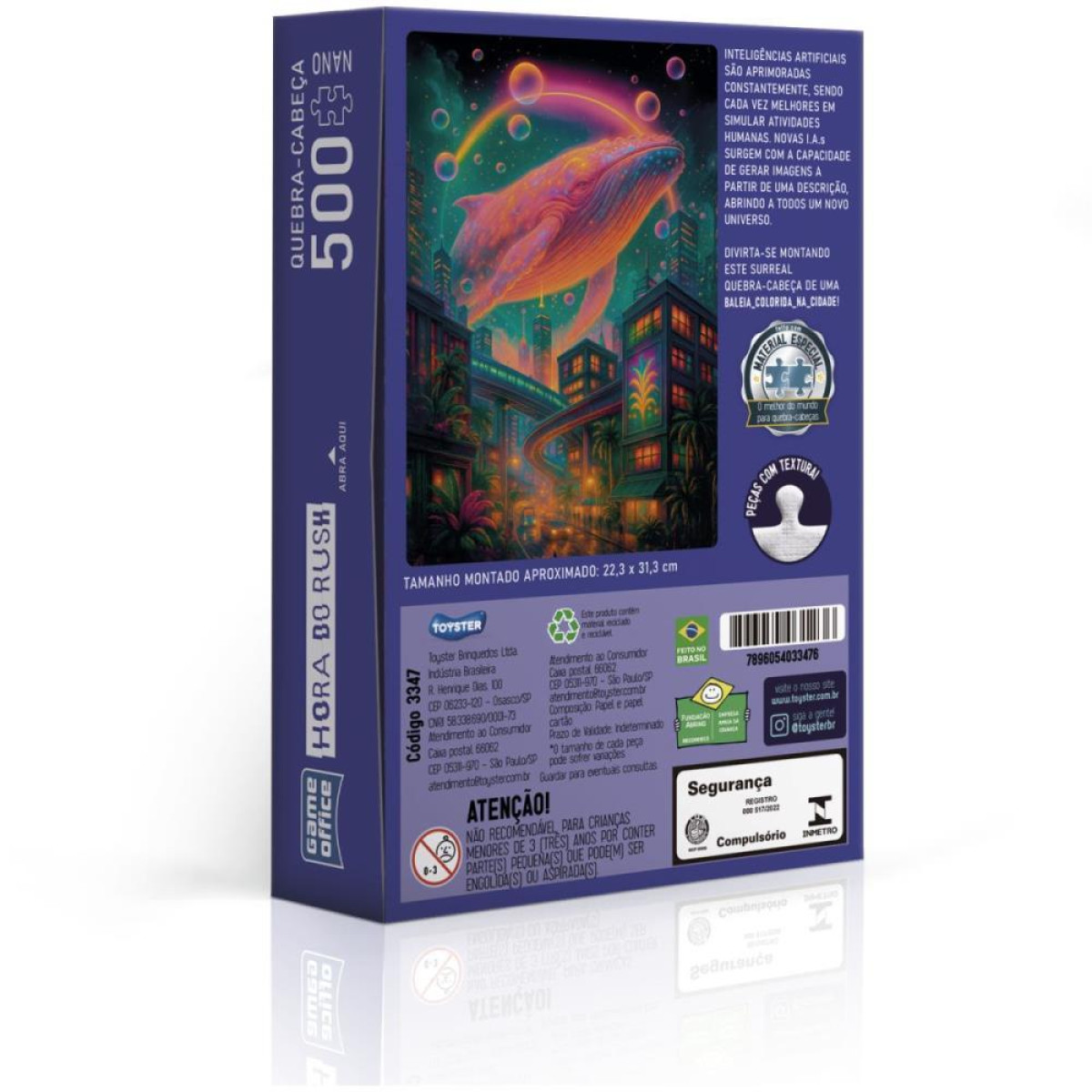 Divirta-se montando este impressionante quebra-cabeca de 500 pecas da Baleia pela cidade! Este quebra-cabeca vem com padrao internacional de qualidade e encaixe suave que pode ser sentido em cada peca!"