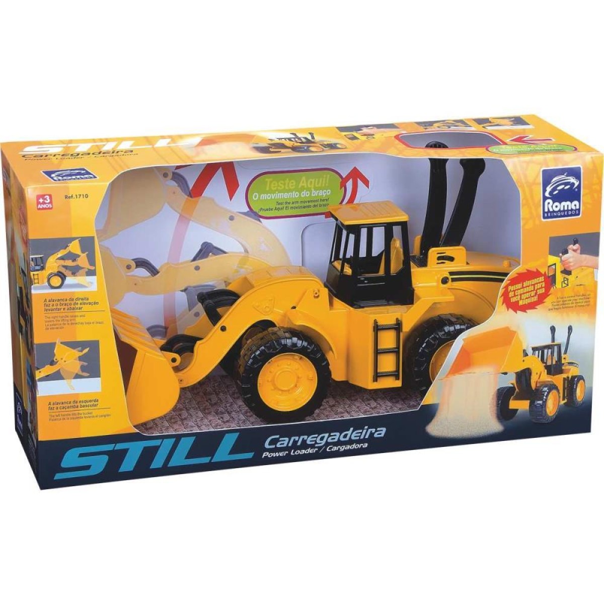 A carregadeira Still e articulada e possui alavancas que comandam o braco e a cacamba. Possui Chassis com acabamento.