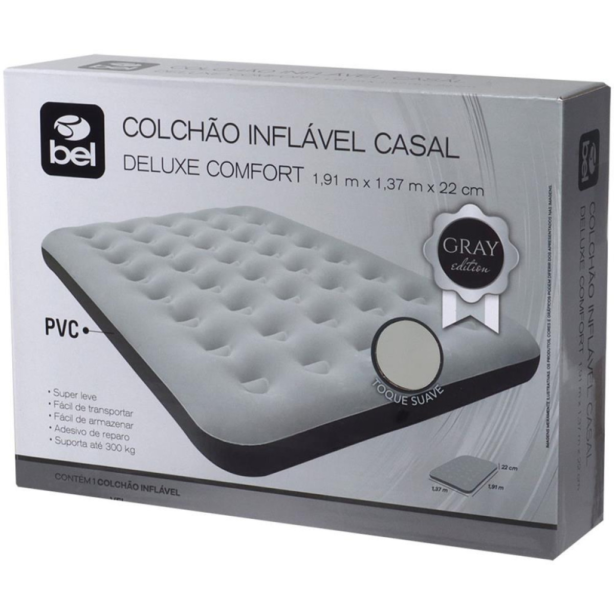 Perfeito para quem busca praticidade sem abrir mao do conforto, o Colchao Inflavel Casal Deluxe Comfort Bel e ideal para uso domestico, camping ou viagens. Compacto e facil de guardar, garante noites de descanso com conforto e estabilidade.