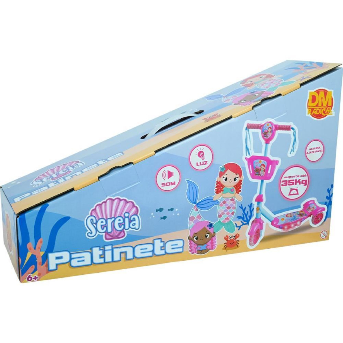 Patinete com cestinha e um lindo tema de sereia, exclusivo da DM RADICAL! Ele acende luz na base e emite som musical. Possui duas rodas traseiras, o que da mais estabilidade para a crianca que ainda esta aprendendo a andar.