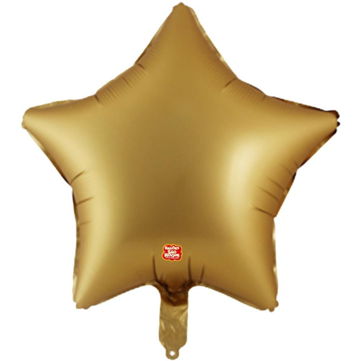 Balao Metalizado Decorado Estrela Dourado Fosco 45cm