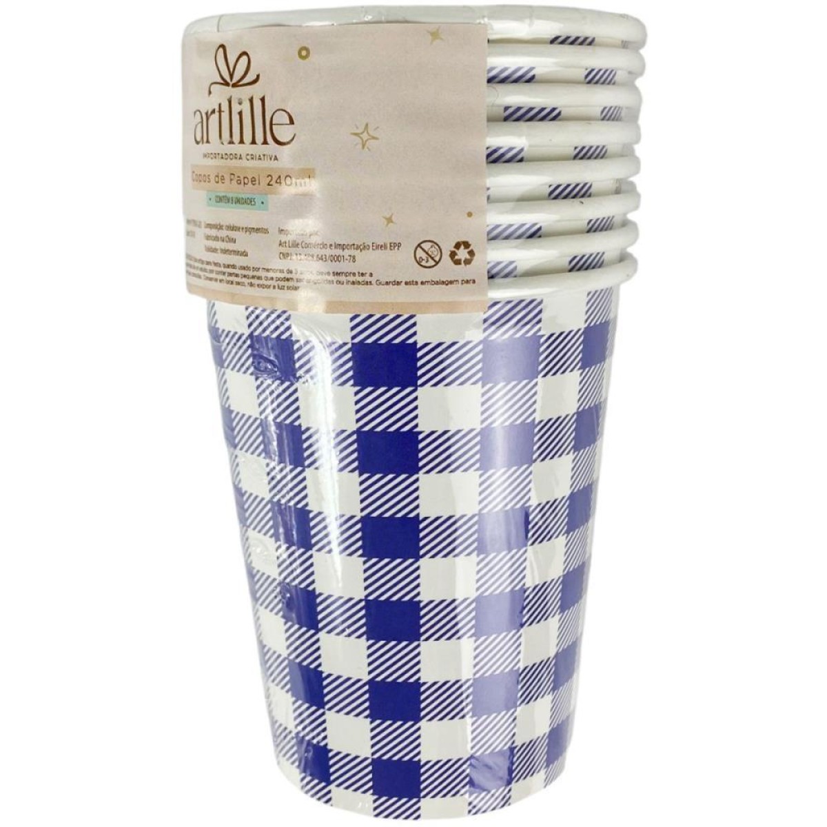 Festa Junina Copo De Papel Xadrez Az 240ml