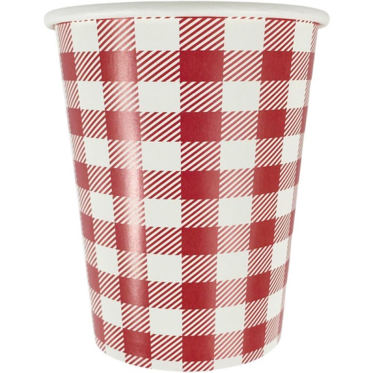 O Copo de Papel Xadrez combina praticidade e estilo para servir seus convidados com todo o charme do campo. Com estampa classica xadrez em vermelho e branco, remete as toalhas de piquenique e a decoracao rustica das quermesses, sendo perfeito para bebidas, caldos ou pipoca de forma criativa. Feito em papel, e uma opcao segura e mais sustentavel para festas com criancas ou grande fluxo de pessoas. Alem de funcional, valoriza a decoracao da mesa, trazendo padronizacao e beleza ao seu Arraia.