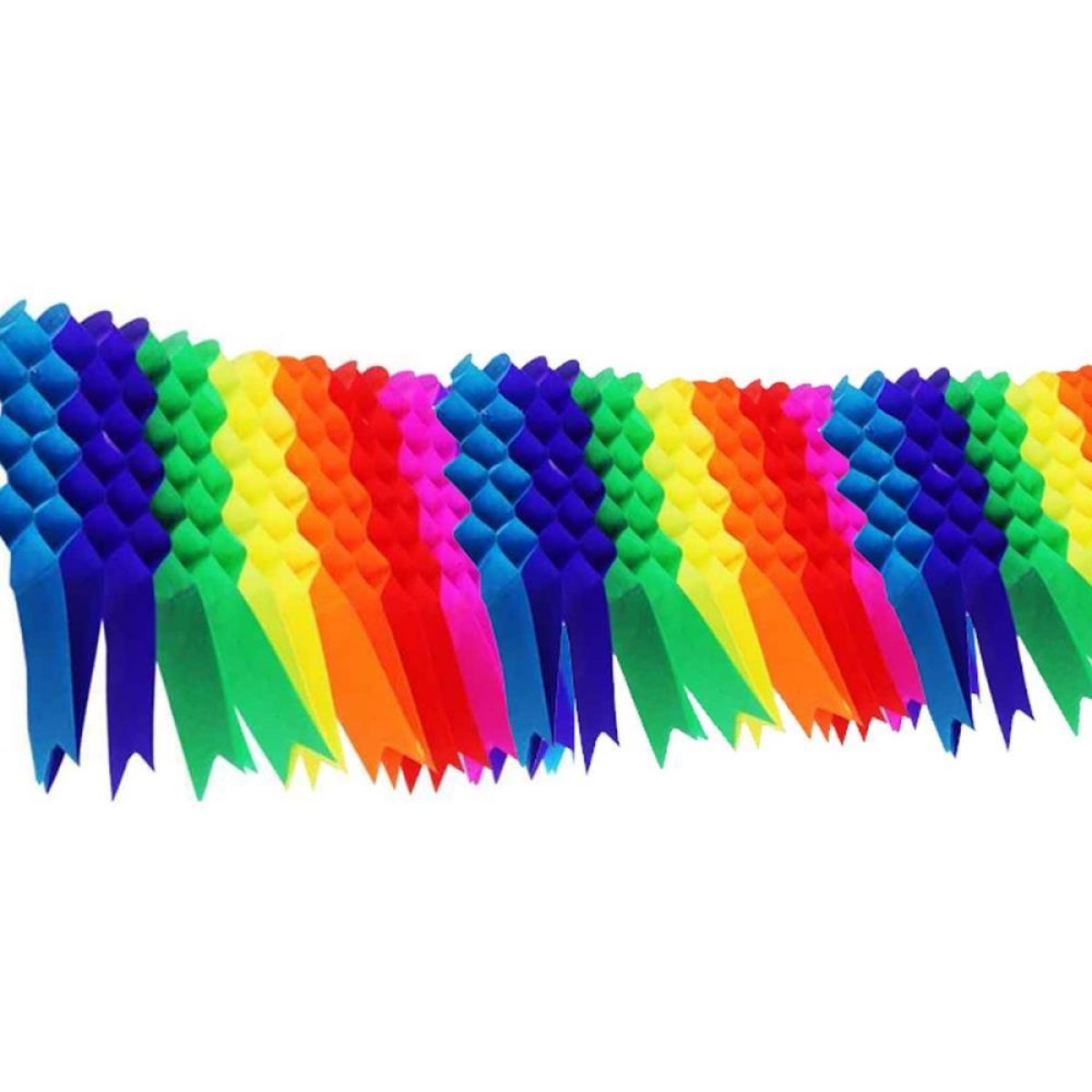 A Faixa Sanfonada de Papel de seda e o segredo para uma decoracao junina volumosa, colorida e cheia de vida! Por ser feita de papel leve e possuir um movimento fluido, ela balanca suavemente com o vento, trazendo a verdadeira essencia das quermesses para o seu evento. E perfeita para ser pendurada de ponta a ponta no teto, criar molduras em barracas de comidas tipicas ou decorar vaos de portas e janelas. Sua versatilidade permite que seja esticada conforme a necessidade, garantindo um acabamento festivo impecavel em escolas, clubes ou festas residenciais. Um item tradicional que une baixo custo e alto impacto visual para o seu Arraia!