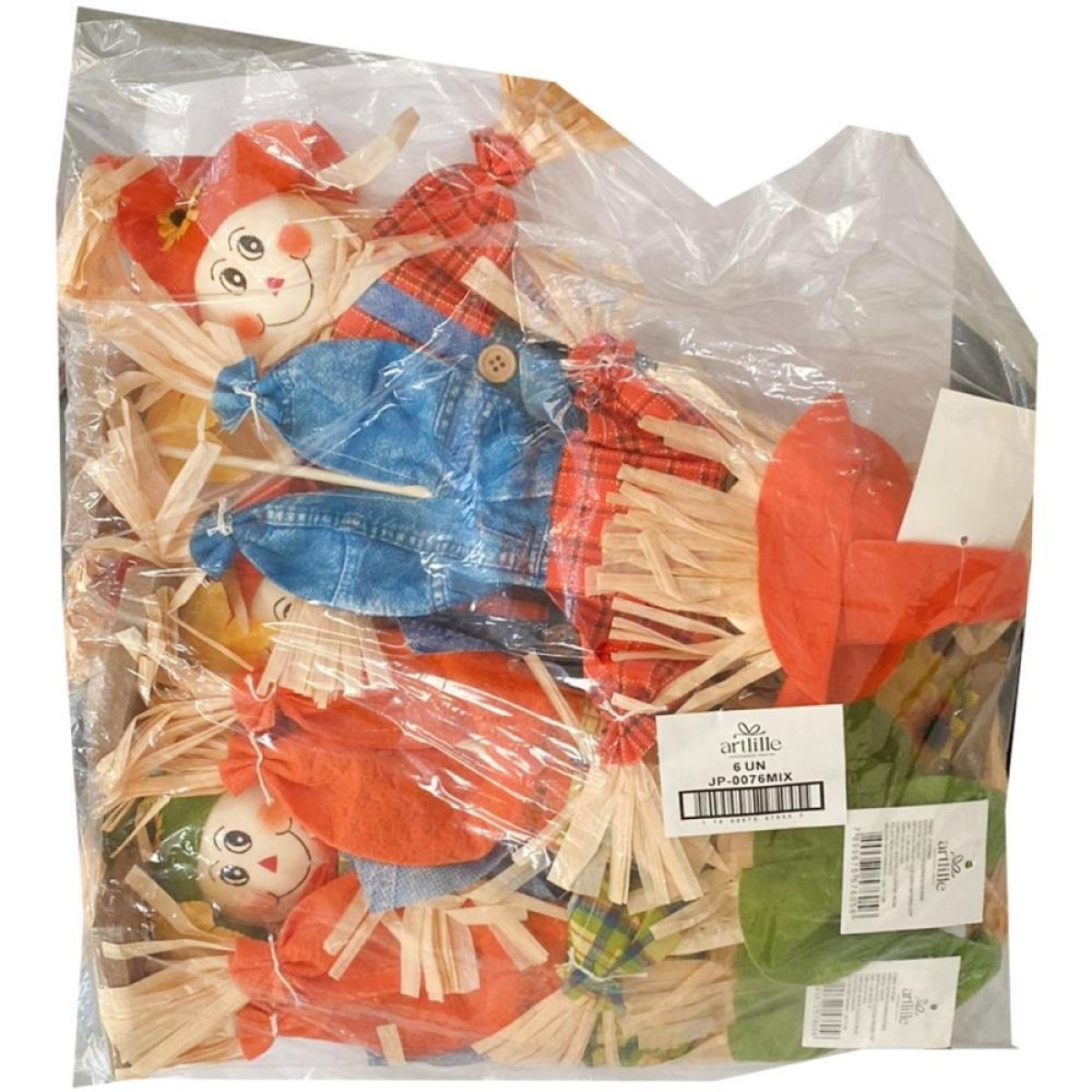 O Enfeite de Espantalho na Base e ideal para destacar sua decoracao junina com charme e estilo rustico. Com acabamento em tecido, palha e detalhes em xadrez, e uma versao maior e imponente. Disponivel em mix de menino e menina, representa o casal caipira com roupas coloridas tipicas do Sao Joao. Sua base de madeira garante estabilidade, sendo perfeito para mesas, balcoes ou composicoes com fardos de feno. Une tradicao artesanal e visual ludico, criando um ambiente acolhedor e cheio de personalidade.