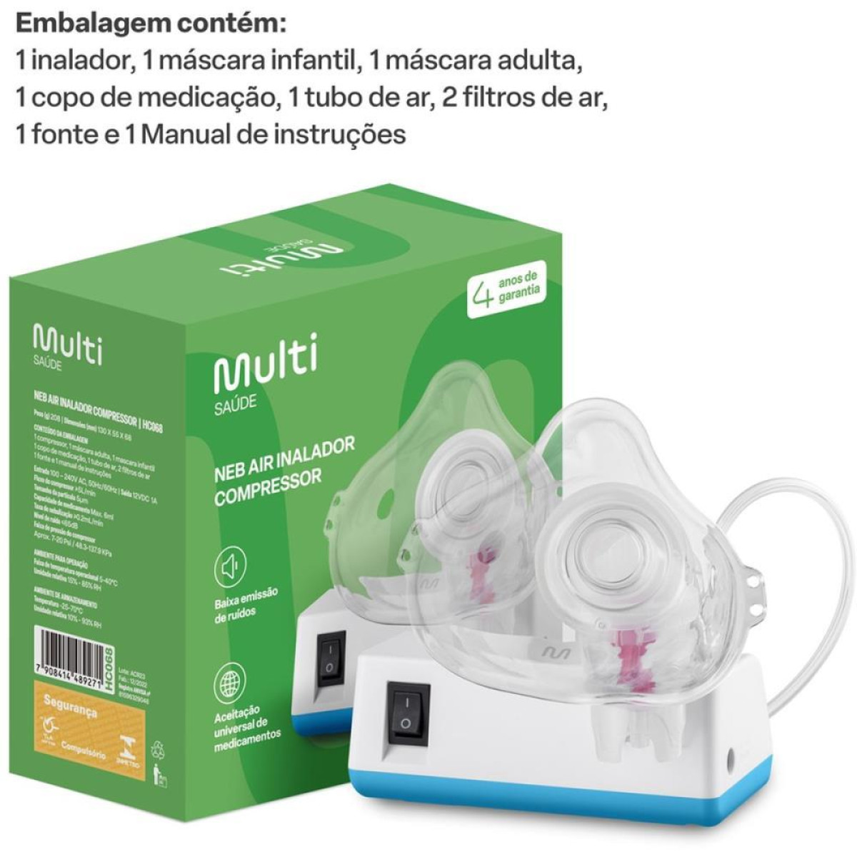 Procurando uma solucao eficaz para problemas respiratorios? Apresentamos o Inalador Compressor Neb Air Bivolt. Compacto, leve e eficiente, este produto exclusivo da Multi Saude vai revolucionar a sua forma de tratar doencas respiratorias. Com apenas 208g, este inalador e leve e compacto, trazendo praticidade para o momento da inalacao e no tratamento de doencas respiratorias. Alem disso, sua aceitacao universal de soros e medicamentos garante versatilidade e eficacia no tratamento. E o melhor de tudo, e bivolt, podendo ser utilizado em tomadas 110V ou 220V, proporcionando conveniencia em qualquer lugar.