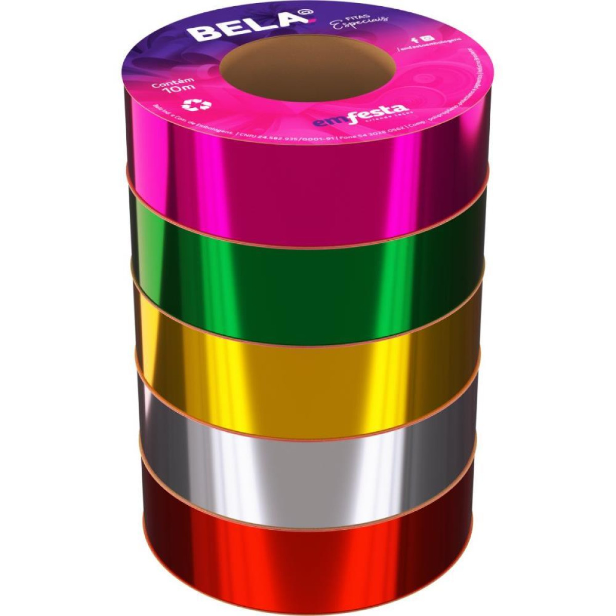 Fita Plastica Metalizada Brilho 30 mm x 100 m Sortido - Emfesta