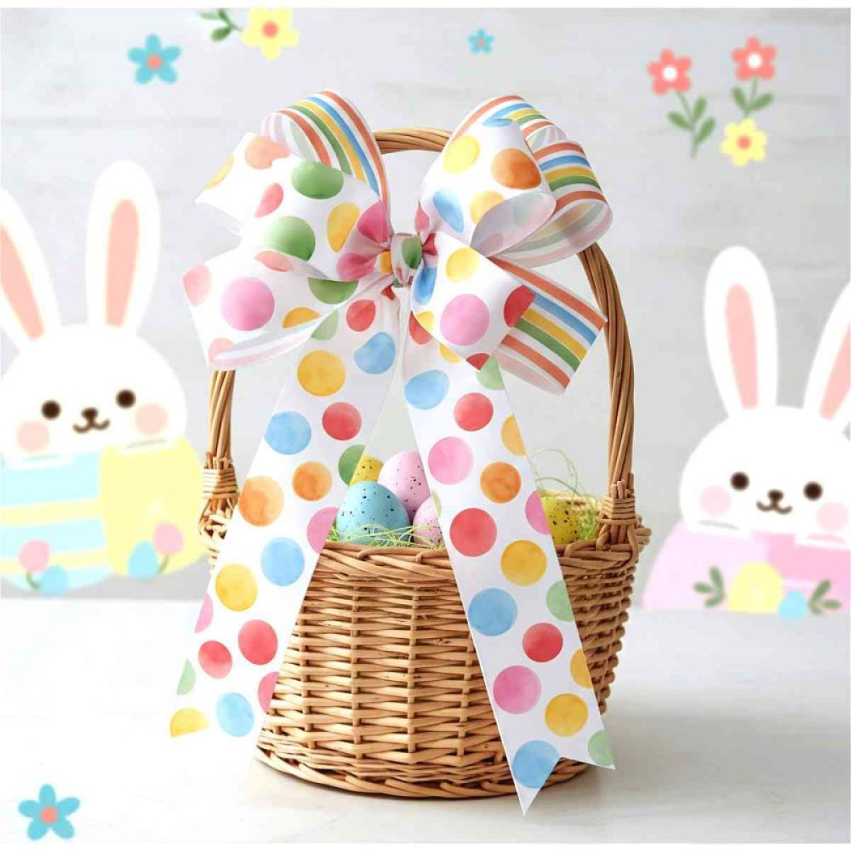Laco pratico para presente em estampa Pascoal. Tamanho armado de aproximadamente 15cm de diametro.