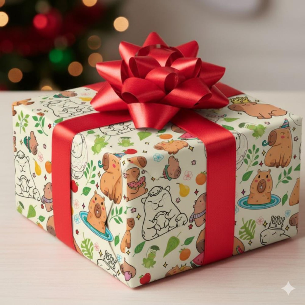 Papel Presente Bobina Couche 40cm. Mod.156 Mundo Capivaras Eleve a arte de presentear com nosso Papel de Presente. Seus clientes vao adorar e seus presentes nunca mais serao os mesmos. Papel couche com brilho.