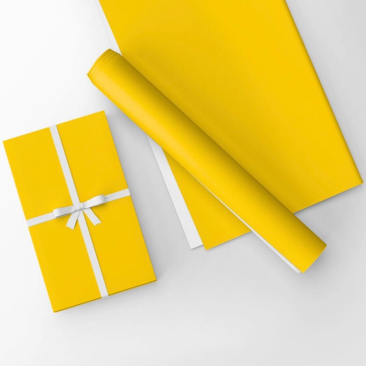Papel Presente Bobina Couche 40cm. Mod.714 Amarelo Eleve a arte de presentear com nosso Papel de Presente. Seus clientes vao adorar e seus presentes nunca mais serao os mesmos. Papel couche com brilho.