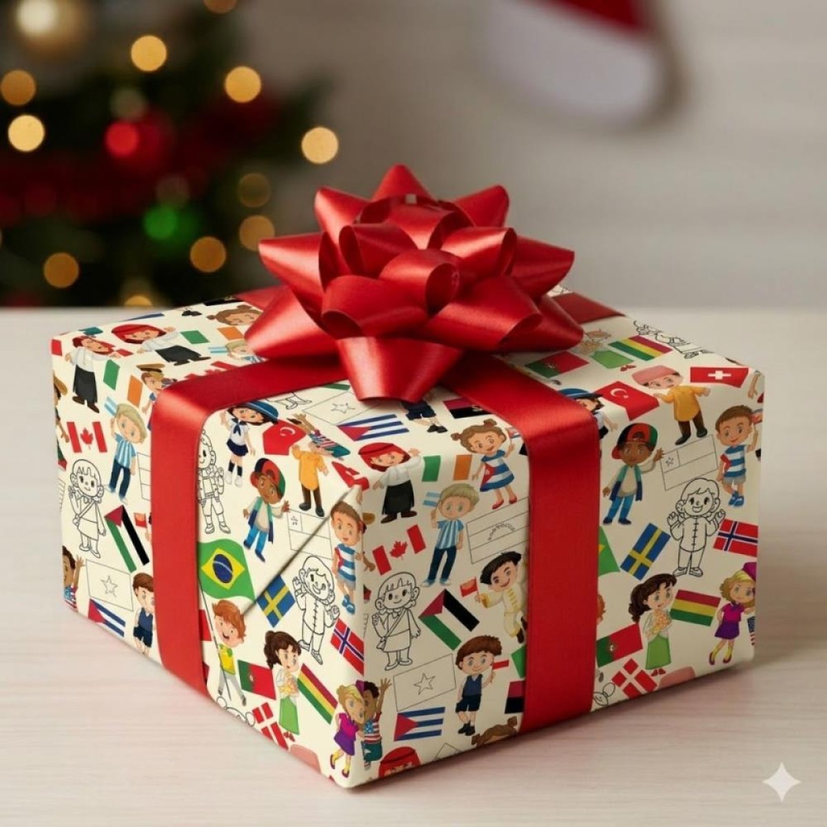 Papel Presente Bobina Couche 60cm. Mod.111 Criancas Bandeir Eleve a arte de presentear com nosso Papel de Presente. Seus clientes vao adorar e seus presentes nunca mais serao os mesmos. Papel couche com brilho.