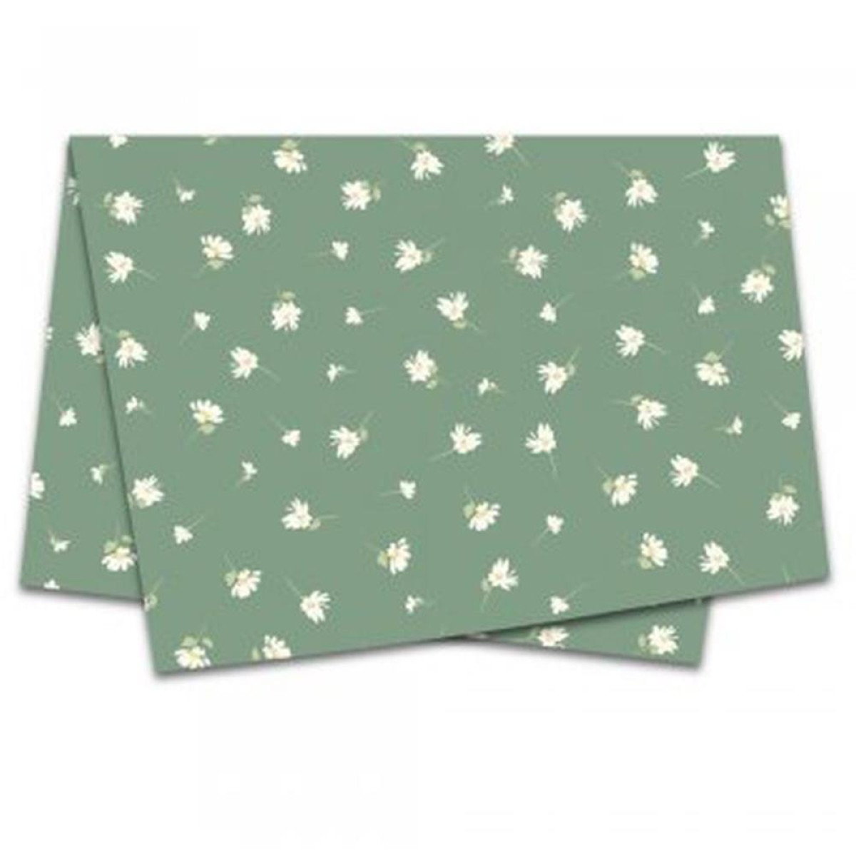 A estampa Daisy traz desenhos delicados de margaridas com fundo verde salvia