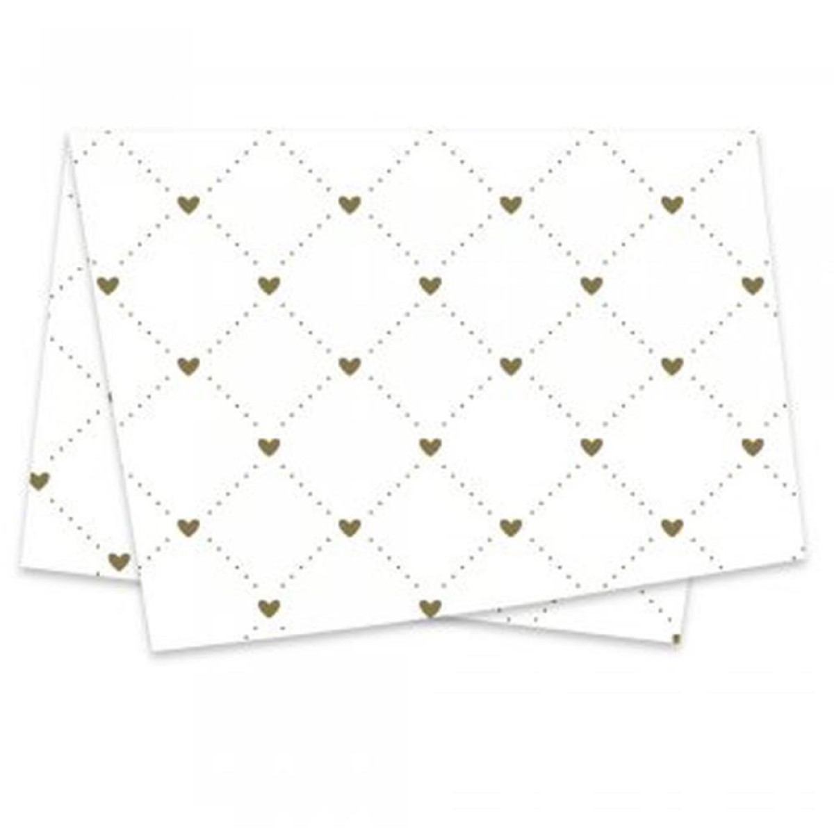 Possui estampa dourada que lembra uma joia com pequenos coracoes com fundo branco.