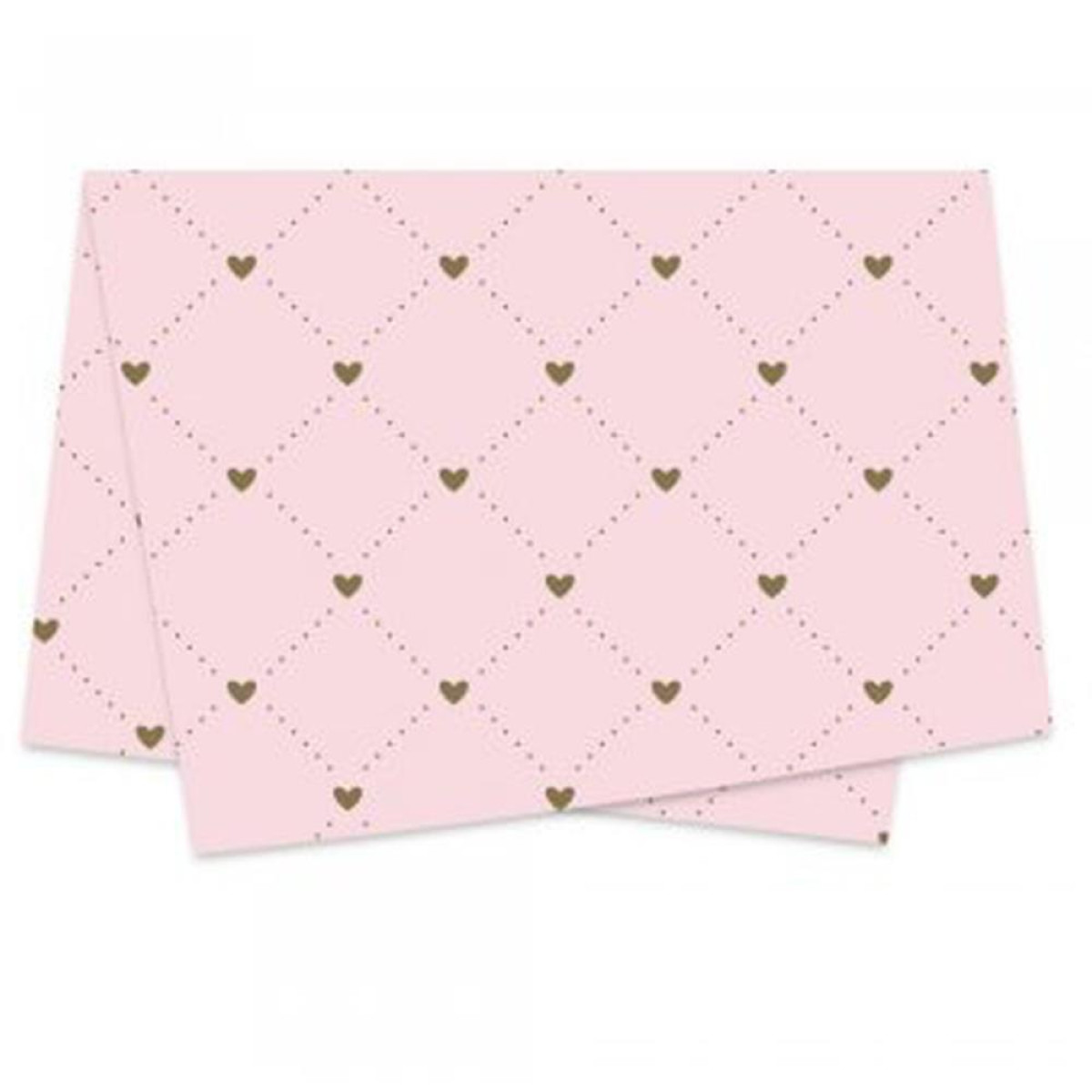 Possui estampa dourada que lembra uma joia com pequenos coracoes com fundo rosa quartz