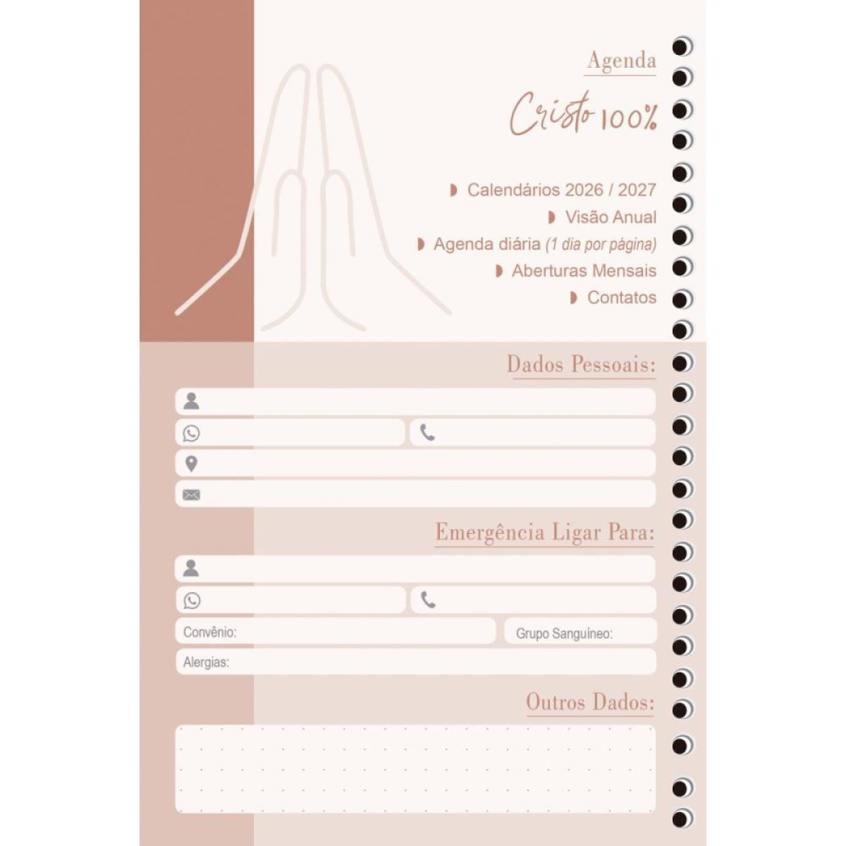 A agenda CRISTO 100%, e composto por 4 capas, com mensagens de fe e estampas emocionantes. E uma colecao
