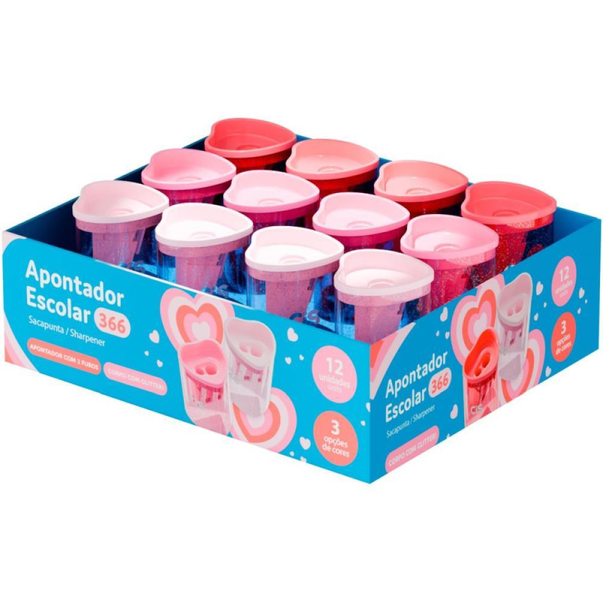 Apontador Com Deposito 2 Furos Cis 366 Coracao Com Glitter (s) Caracteristicas do produto • Apontador com 2 furos. • Formato de coracao. • Com deposito grande. • Corpo com glitter.
