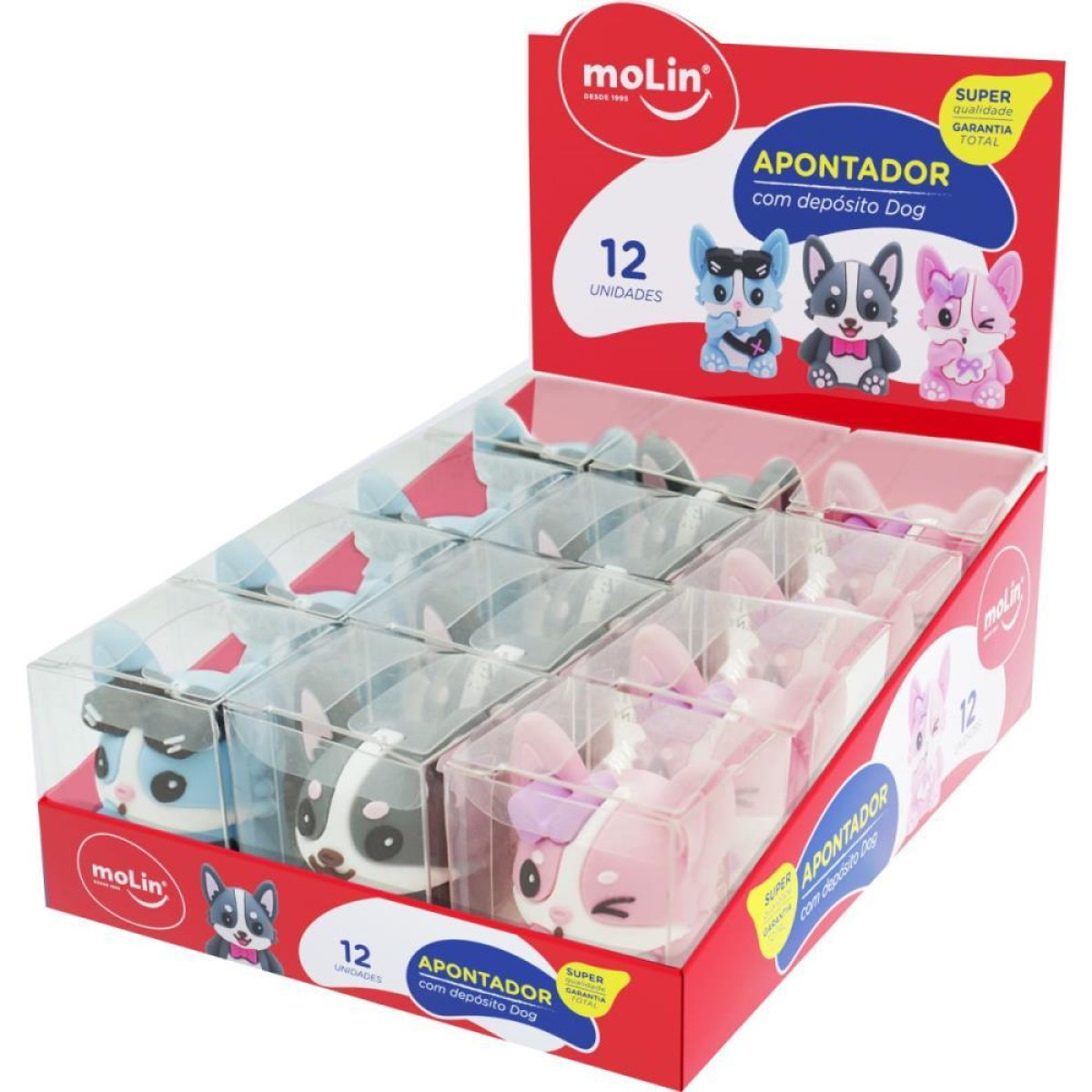 Apontador Com Deposito Dog (s) Apontador Super Fofo em formato de Cachorrinho com deposito. Aponta Lapis Normal . Disponivel em 3 cores. Display c12 unidades.
