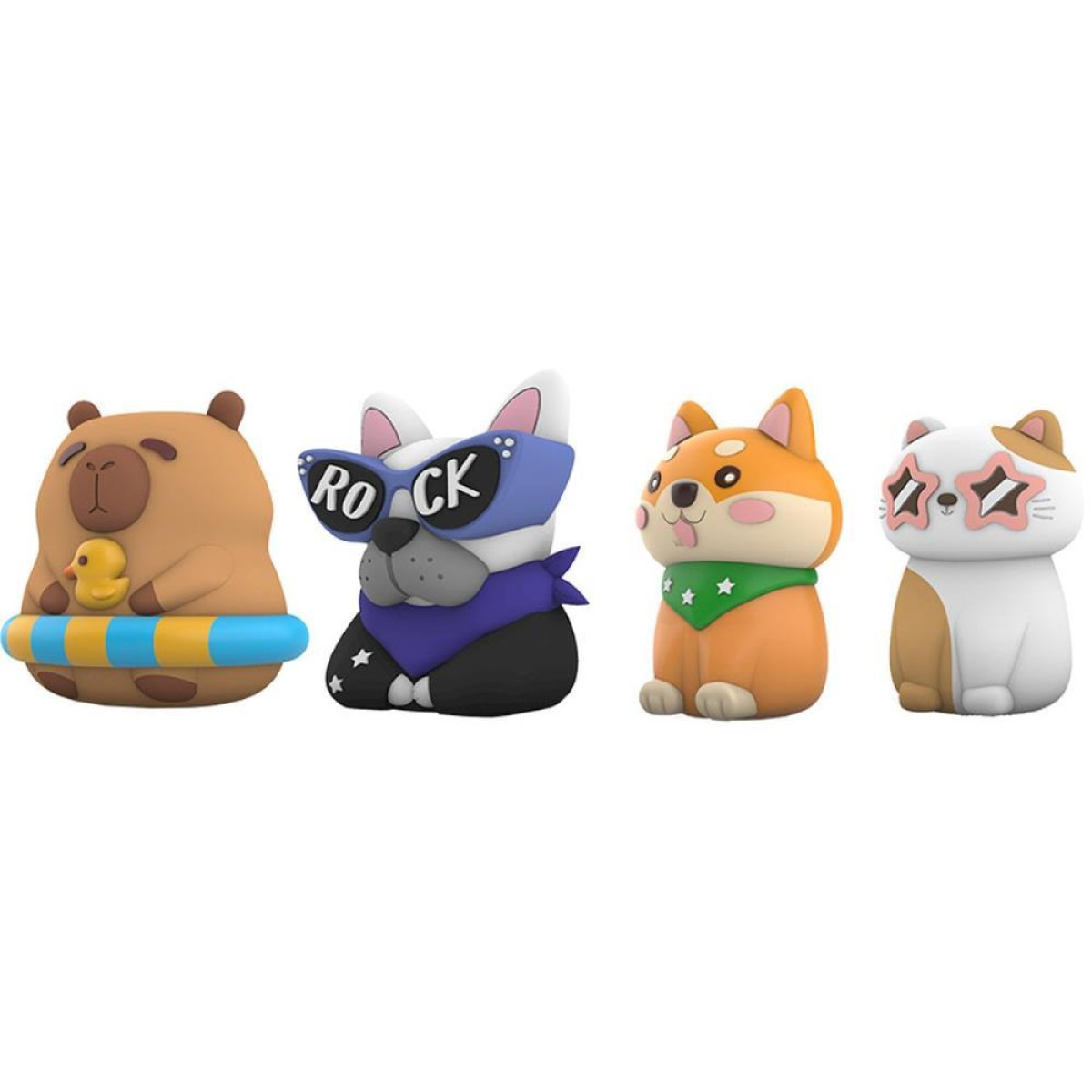 Apontador emborrachado Focinhos, disponivel nos formatos de cachorro, gato e capivara. Com design fofo e divertido, eles ficam em pe sobre a mesa, como verdadeiros mascotes que acompanham sua rotina. Ideal para quem quer deixar o material cheio de personalidade e charme!