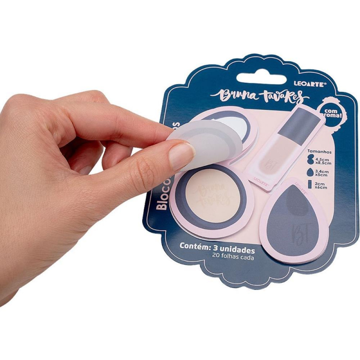 Bloco De Recado Autoadesivo Bruna Tavares C/aroma 3x20fls Bloco adesivo com aroma adocicado; 3 unidades de blocos com formatos de itens de maquiagembeleza; 20 folhas cada bloco, total de 60 folhas.