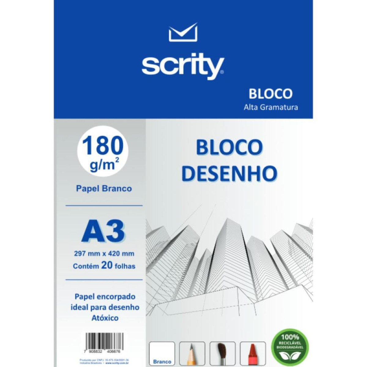 Bloco Para Educacao Artistica Desenho A3 Branco 180g 20fls. Bloco para Educacao Artistica Desenho A3 Branco 180 g 20 fls. - Scrity