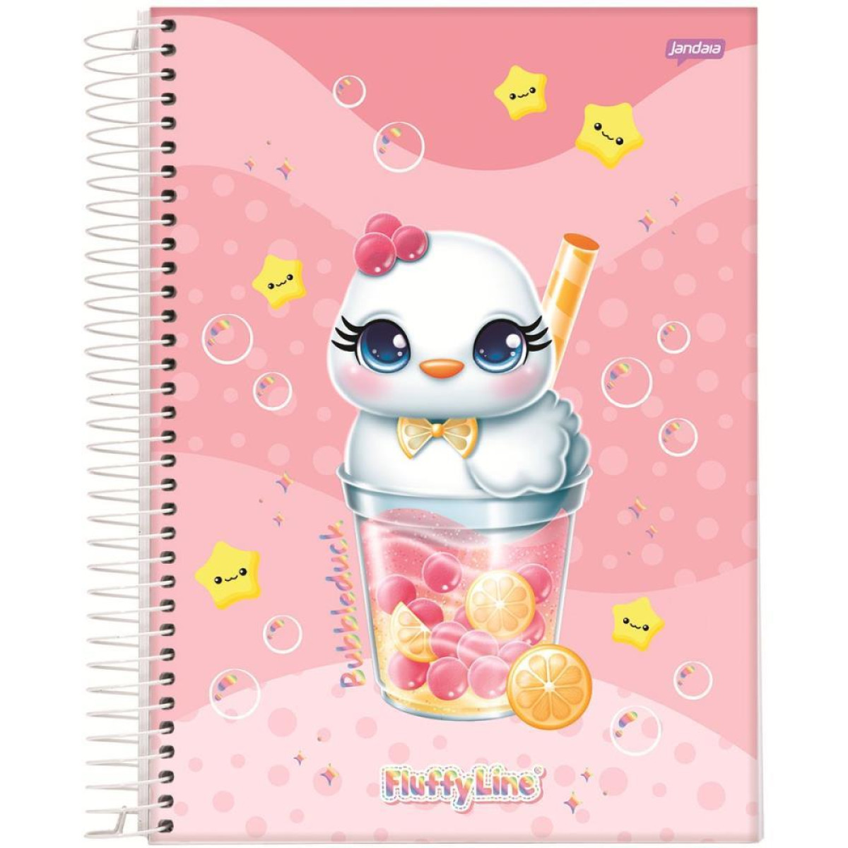 Com personagens encantadores e cores suaves, a linha Fluffy e uma explosao de docura. Ideal para transformar a rotina em uma experiencia ludica e afetuosa. Com laminacao fosca e Hot Stamping holografico, oferece brilho localizado e visual delicado. O miolo tem Pauta Inteligente JandaIA. Acompanha guarda decorado, adesivos e folhas de planejamento. Um toque de docura e organizacao para a rotina escolar. Disponivel em quatro capas encantadoras.