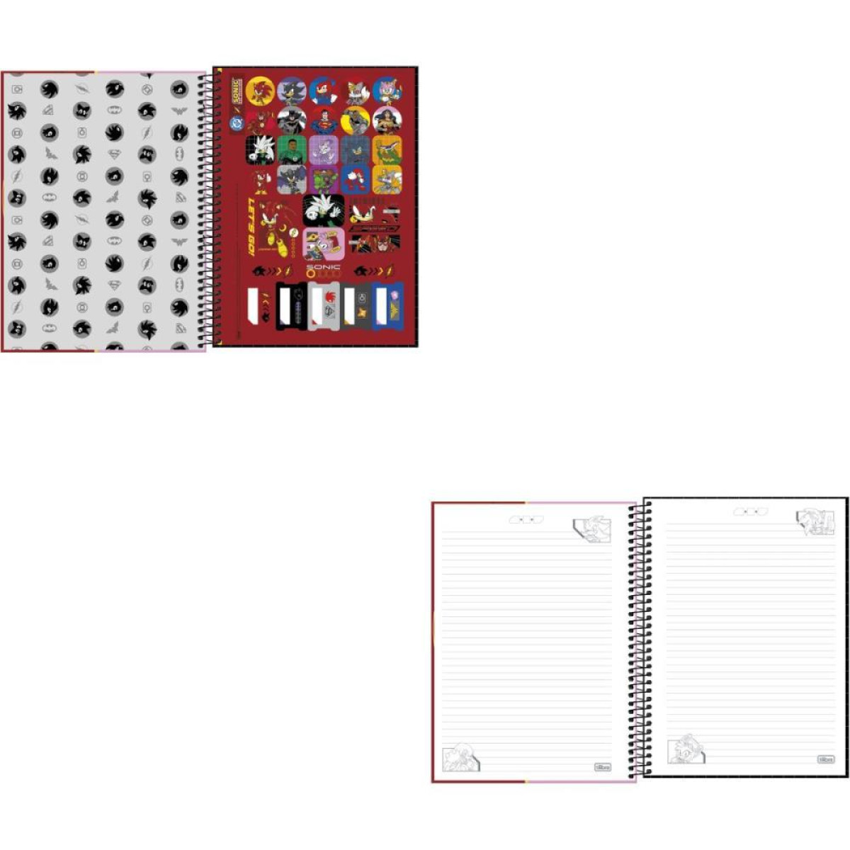 Caderno Universitario 1x1 Sonic DC 80 folhas Tilibra, ideal para organizacao de estudos com estilo divertido. Possui capa dura, miolo pautado e espiral resistente, garantindo praticidade para anotacoes e resumos do dia a dia. Produto de origem nacional e certificado FSC.