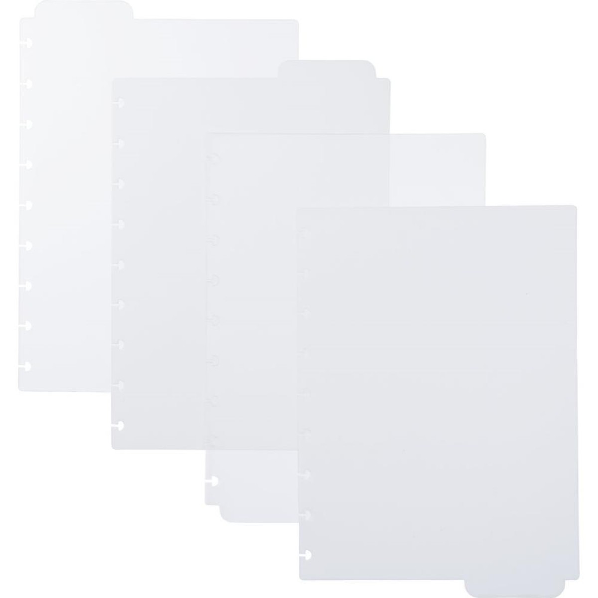 Contem 4 divisorias, sendo 02 transparentes e 02 branco gelo com abas para identificacao.