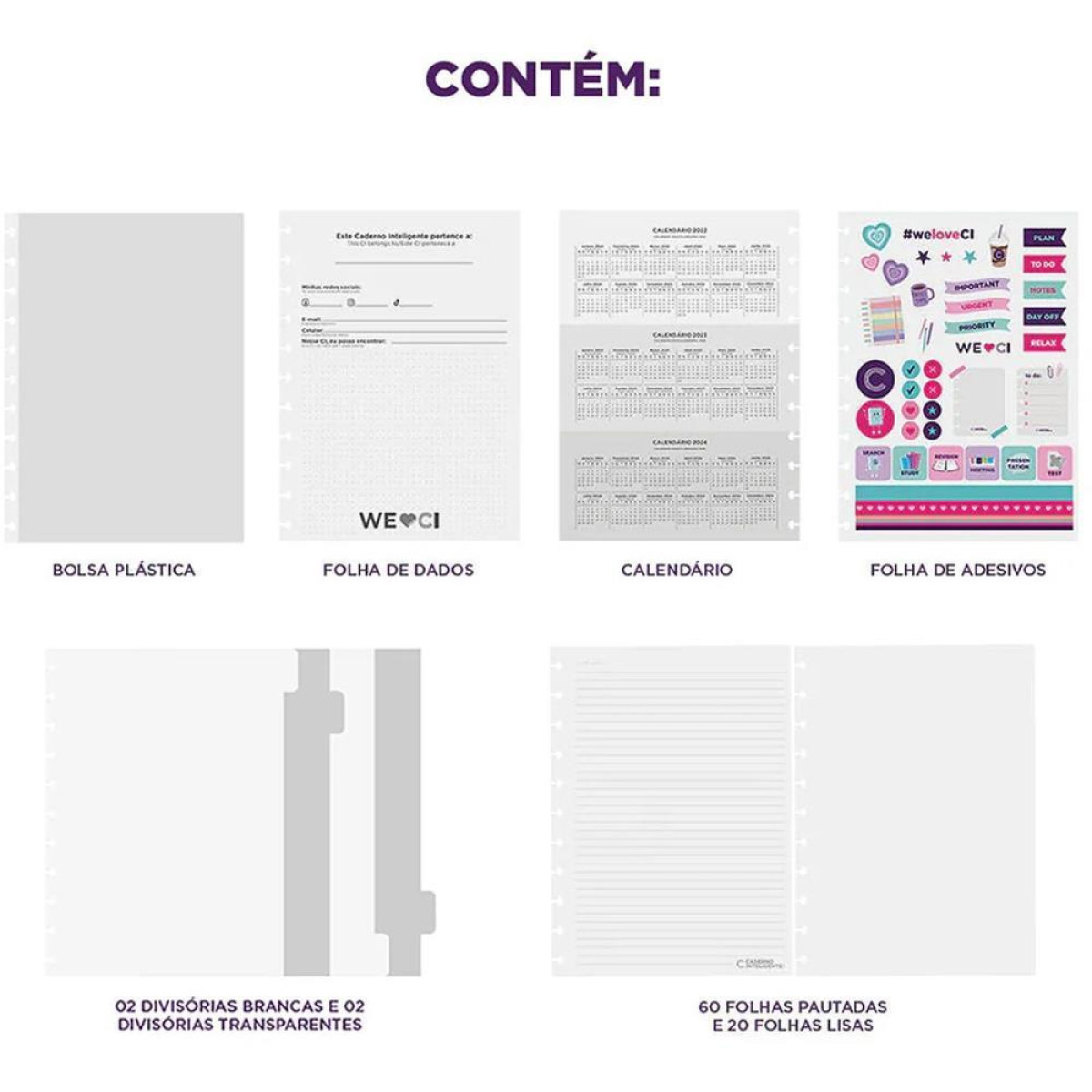 Com o sistema de discos inteligentes, voce tem toda a liberdade para reposicionar, adicionar e retirar as folhas e divisorias, alem de conseguir misturar diferentes tipos de refis conforme a sua necessidade e vontade.