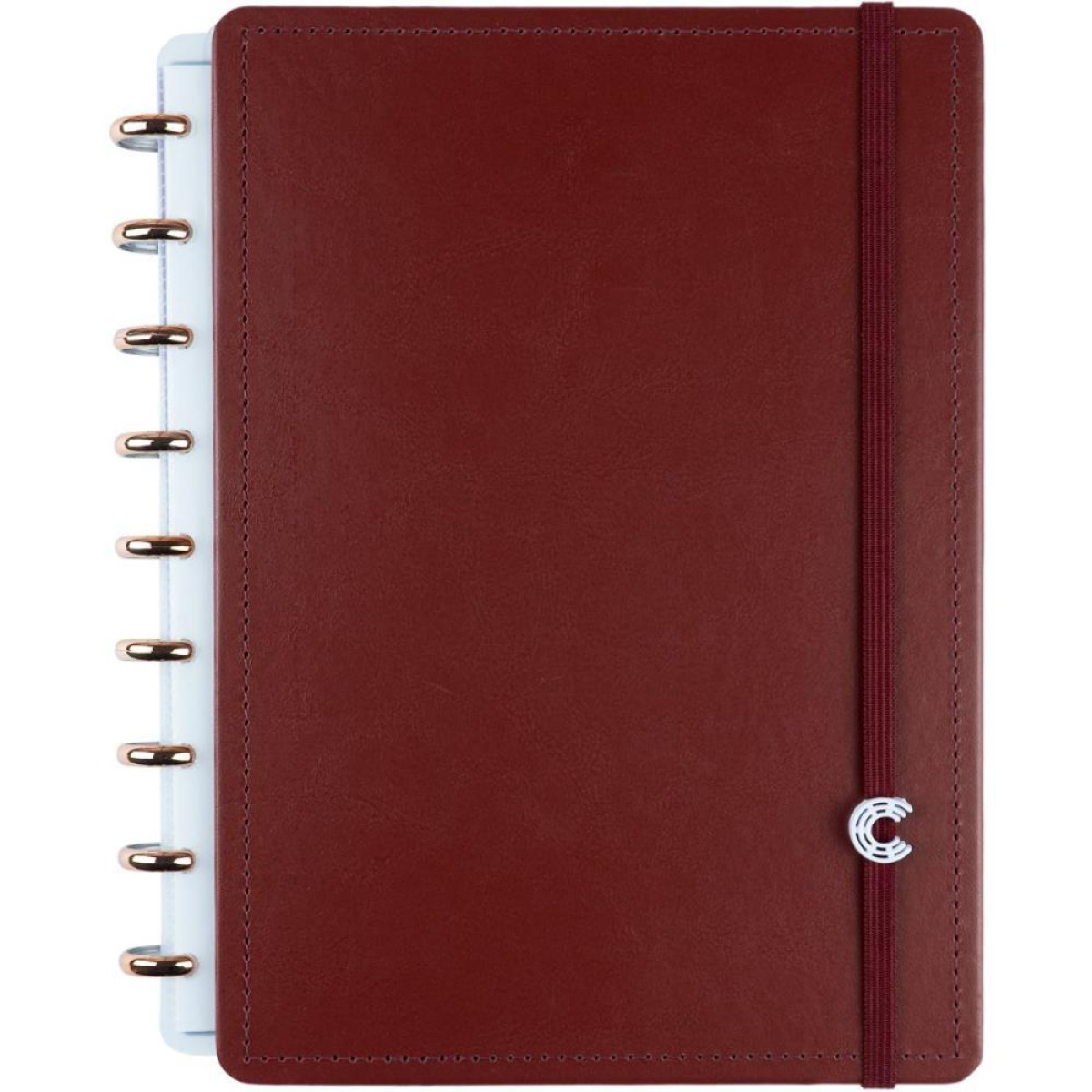 O modelo possui capa dura com acabamento percalux, que imita a textura de um couro sintetico, discos metalizados com o centro transparente e elastico do mesmo tom da capa. E o match perfeito para quem gosta de funcionalidade e praticidade sem deixar o estilo de lado.
