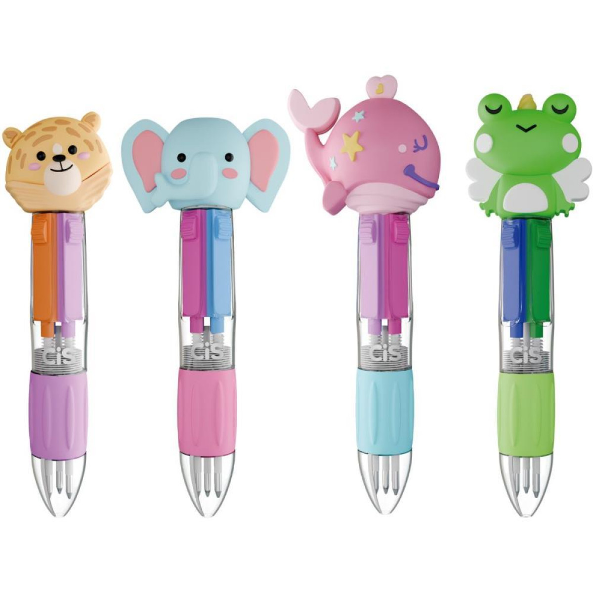 Caneta Esferografica Cis Fun 4x1 Mini 0.7mm (s) Caracteristicas do produto • Caneta com 4 cores. • Ponta retratil. • 4 modelos diferentes. • Grip emborrachado. • Toppers fantasia .