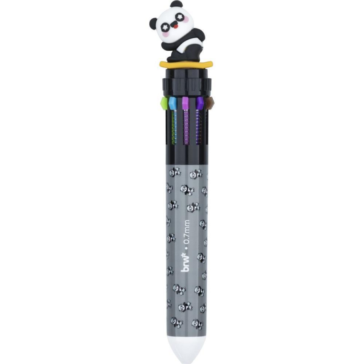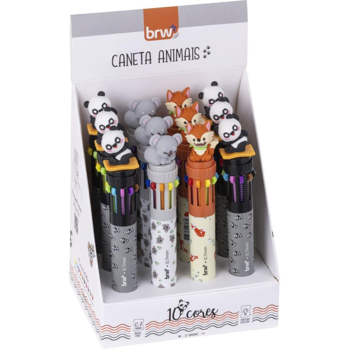 Cada caneta conta com 10 cores vibrantes em um único corpo: laranja, vermelho, azul, preto, marrom, azul claro, verde, rosa, roxo e amarelo. Tudo isso com ponta média de 0.7mm, perfeita para uma escrita leve, uniforme e sem borrões. Além disso, o design é um show à parte: são 3 motivos de personagens divertidos diferentes, que tornam a caneta ainda mais encantadora e colecionável"
