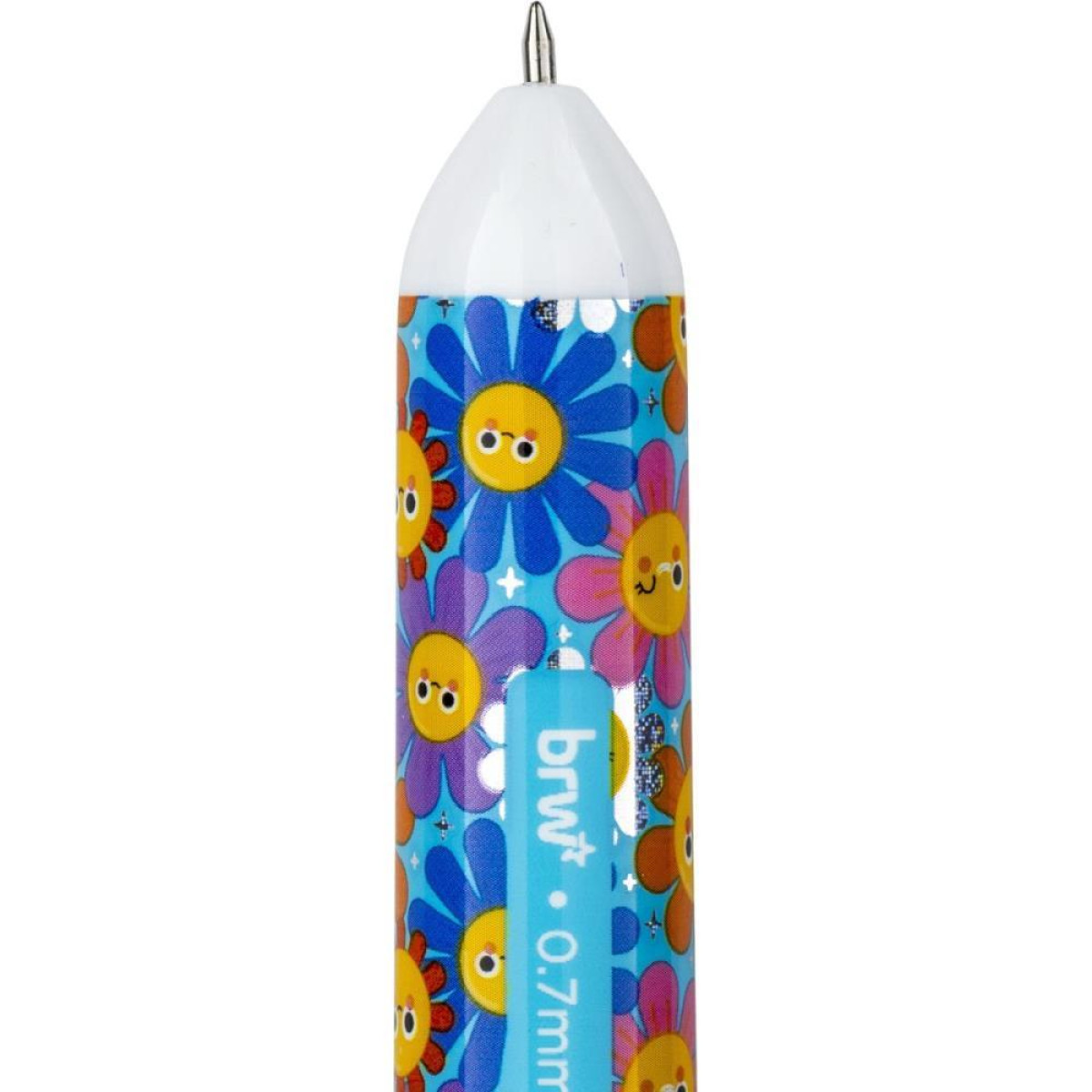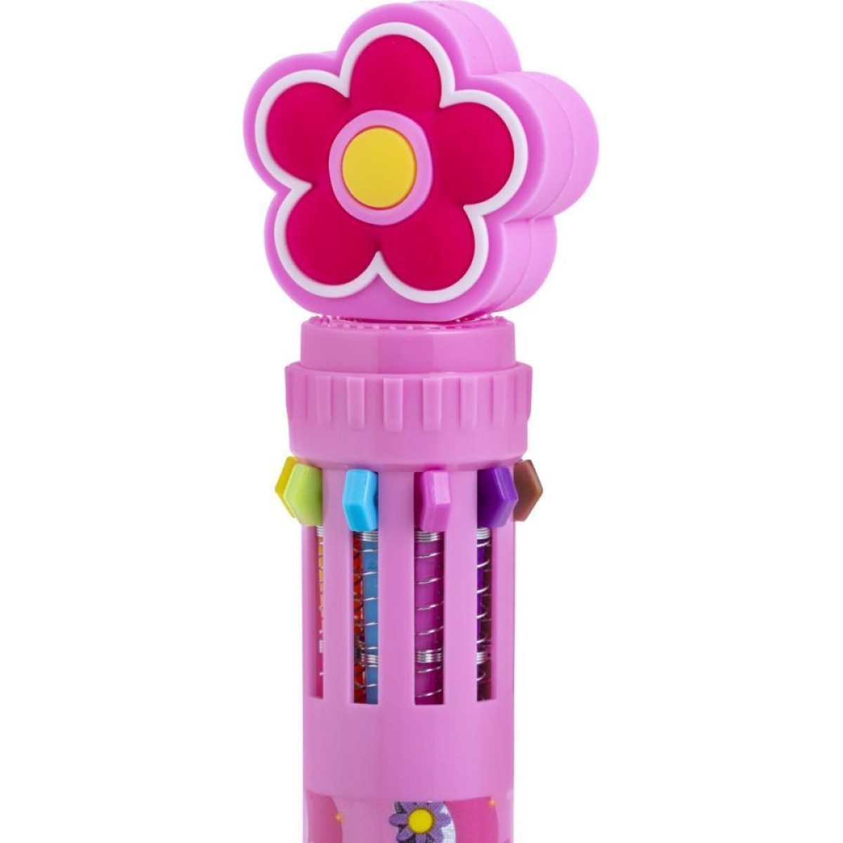 CANETA DIVERTIDA, OPCAO DE BRINQUEDO E PRESENTE. CANETA ESFEROGRAFICA 10 CORES, SENDO: AMARELO, AZUL CLARO, AZUL ESCURO, LARANJA, MARROM, PRETO, ROSA, ROXO, VERDE E VERMELHO. 2 PONTEIRAS FORMATO DE FLOR. CORPO ESTAMPADO COM EFEITO HOLOGRAFICO E SINERGICO COM AS PONTEIRAS.