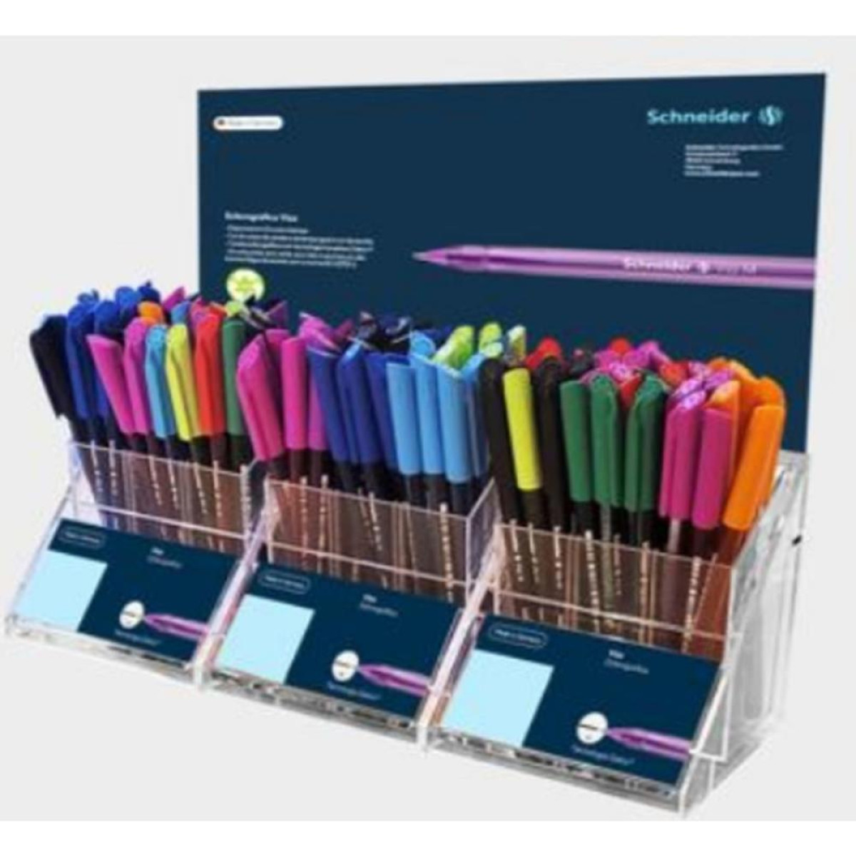 • As cores preta, azul, verde, azul claro e azul escuro sao a prova d’agua de acordo com a norma ISO 12757-2 Esferografica Schneider Vizz garante uma escrita leve e rapida, alem de possuir uma ponta de aco inoxidavel resistente ao desgaste. A tampa com clip se encaixa perfeitamente, garantindo praticidade e seguranca. Os tracos sao feitos com espessura M.