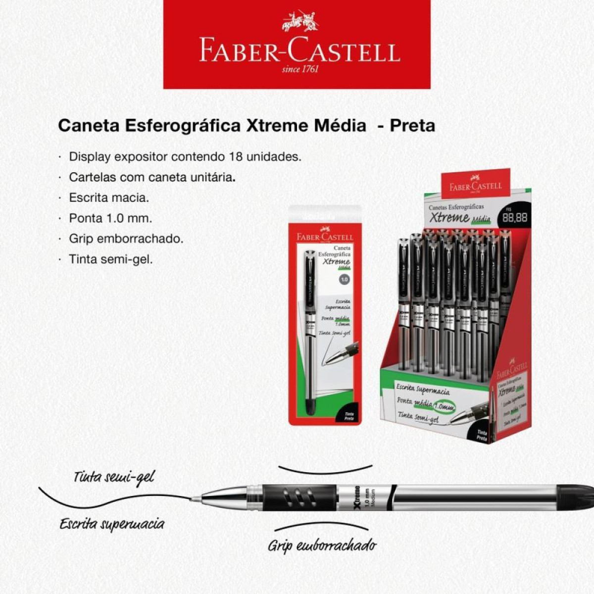 Caneta Esferografica Xtreme 1.0mm Preta "› Display expositor contendo 18 unidades. › Ponta media: 1.0mm. › Grip Emborrachado. › Escrita super macia. › Tinta semi-gel na cor preta"